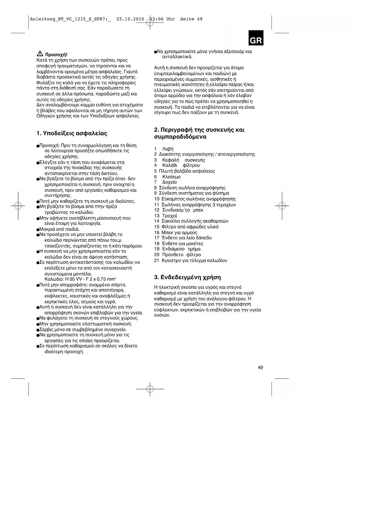 Anleitung_BT_VC_1215_S_SPK7:_ 25.10.2010 15:06 Uhr Seite 49Η μηχανή να χρησιμοποιείται μόνο για το σκοπό για