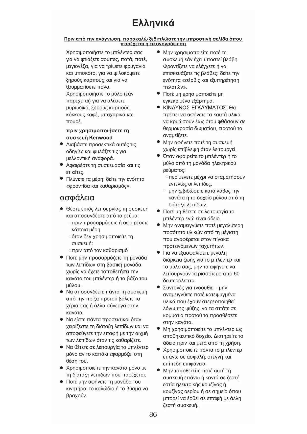 λεπίδων του μύλου. Τοποθετήστε τη