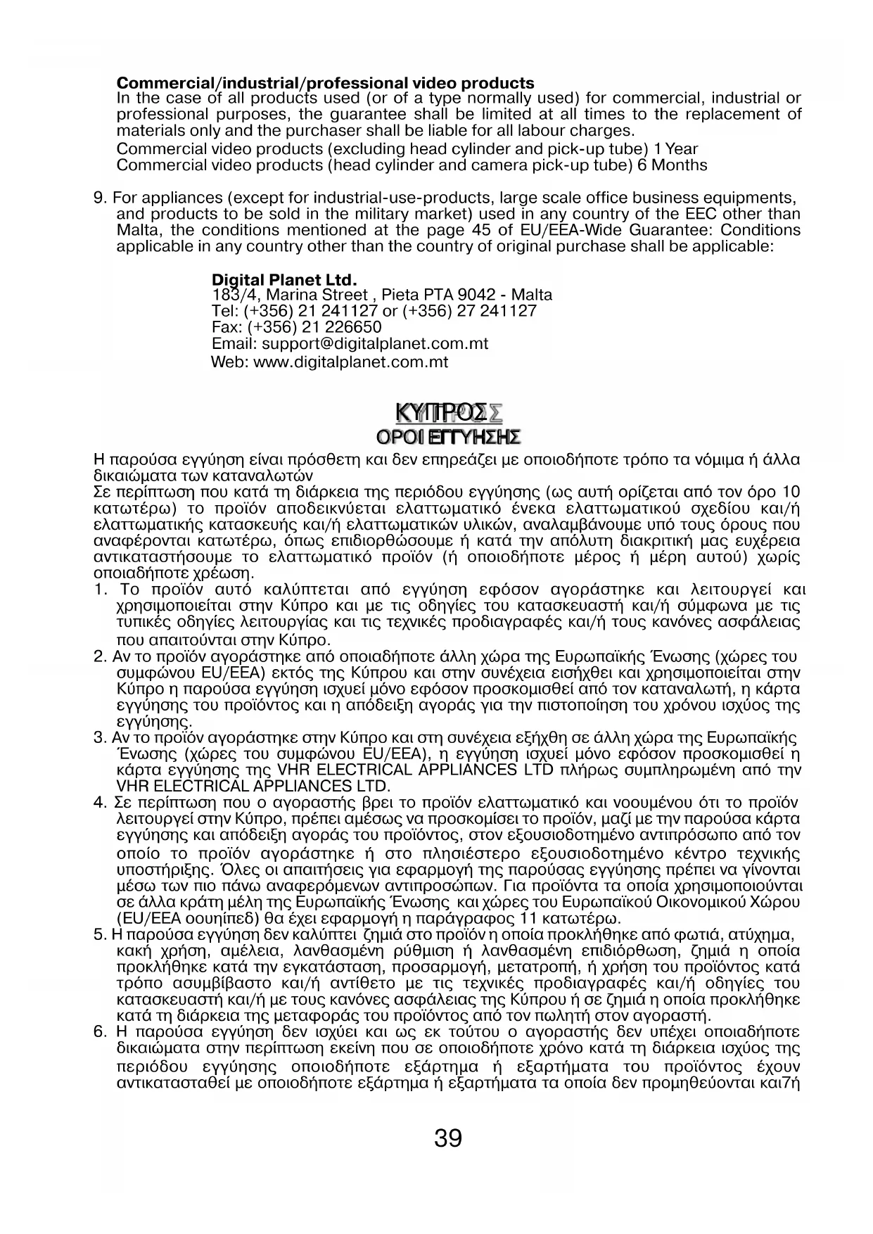 “ΟΡΟΙ ΙΣΧΥΟΣ ΕΥΡΩΠΑΪΚΗΣ (ΕU/ΕΕΑ) ΕΓΓΥΗΣΗΣ”. Εξαιρούνται από την εγγύηση αυτή εκείνα