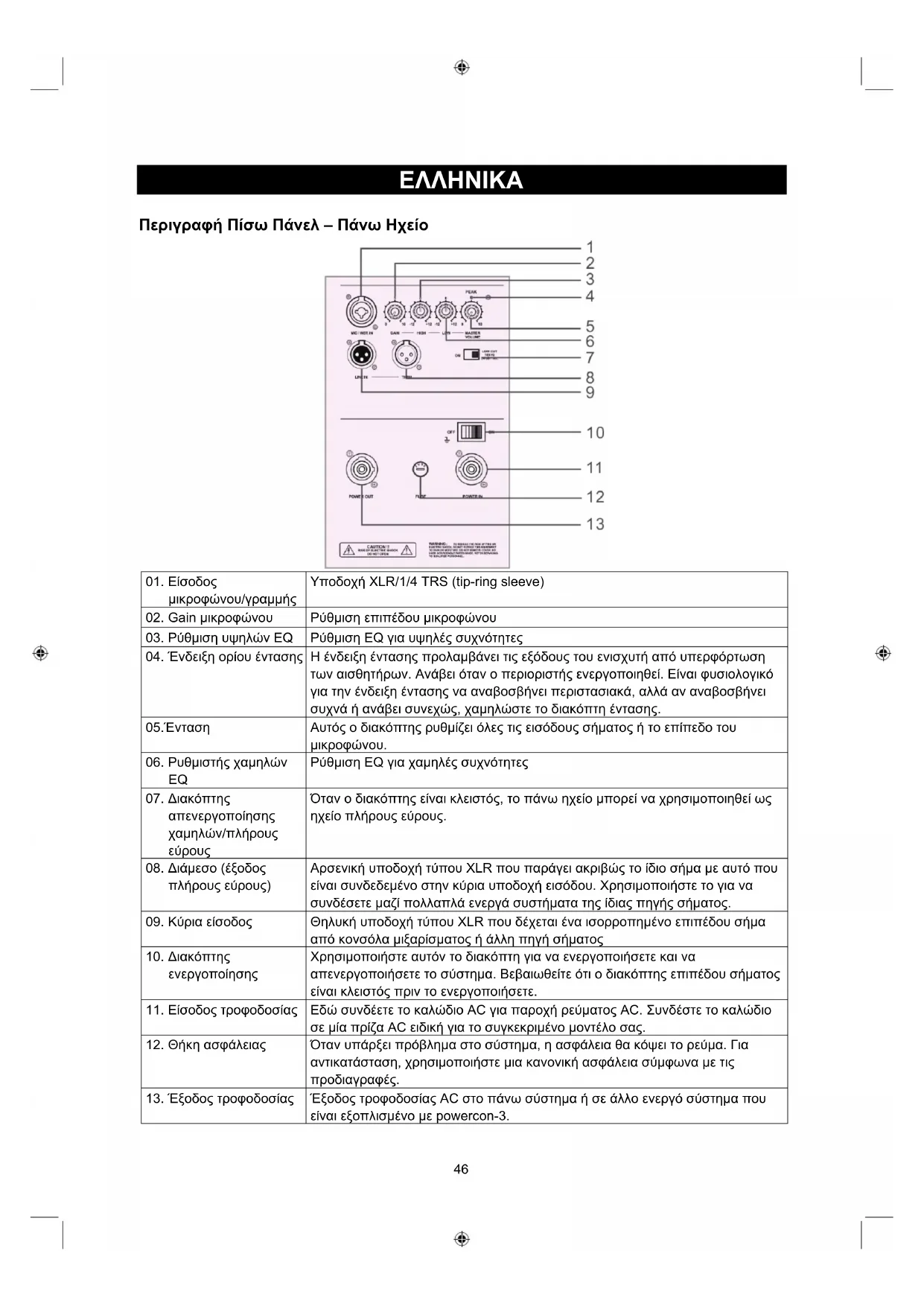 11. Είσοδος τροφοδοσίας Εδώ συνδέετε το καλώδιο AC για παροχή ρεύματος AC. Συνδέστε το καλώδιο