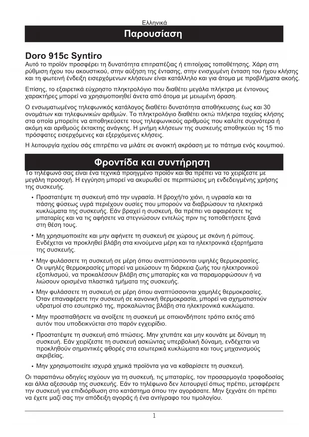ΕΓΧΕΙΡΊΔΙΟ ΧΡΉΣΗΣ Syntiro 915c DORO