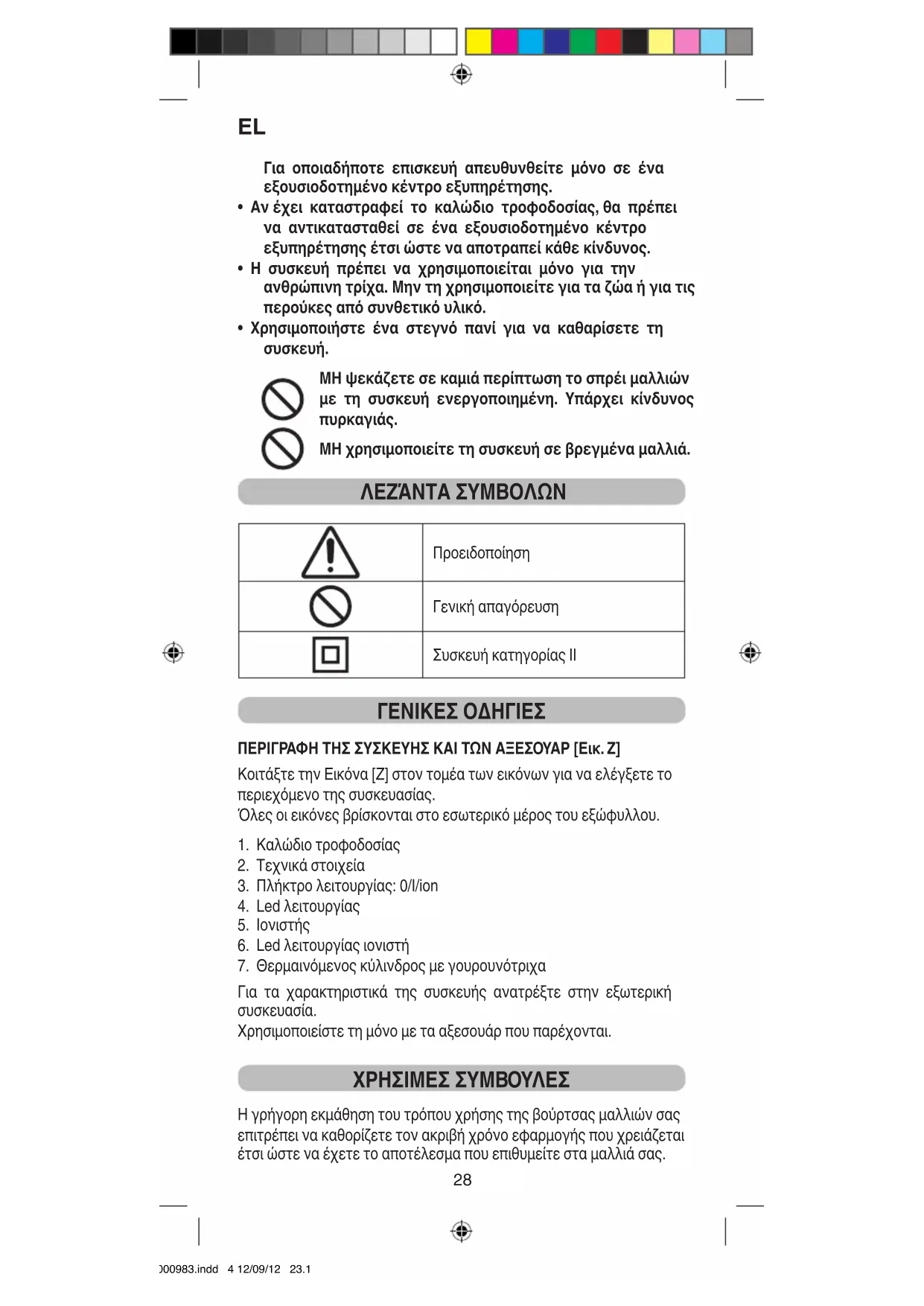 MI000983.indd 4 12/09/12 23.16• Βεβαιωθείτε ότι τα μαλλιά είναι πλήρως στεγνά, καθαρά και χωρίς