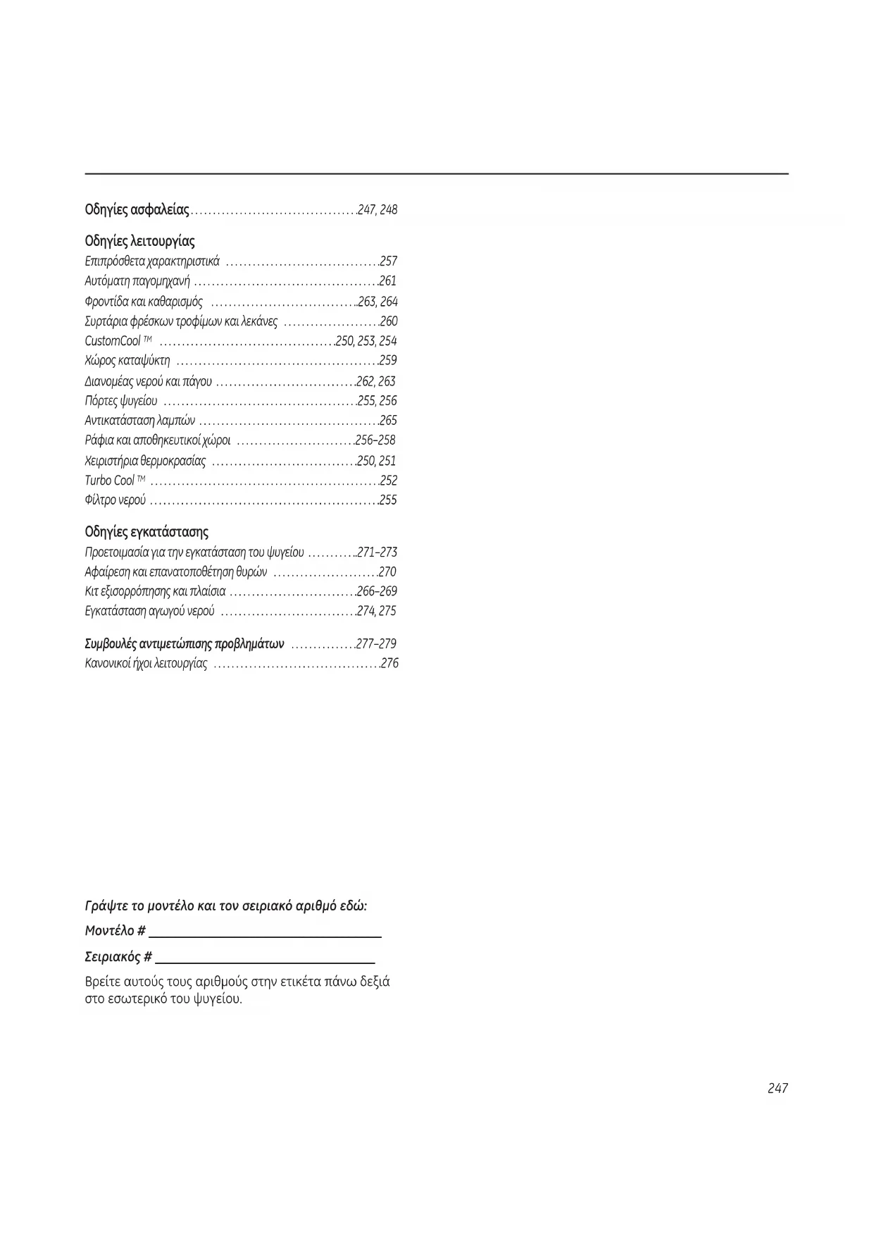 Προετοιμασία για την εγκατάσταση του ψυγείου . . . . . . . . . . ..271–273