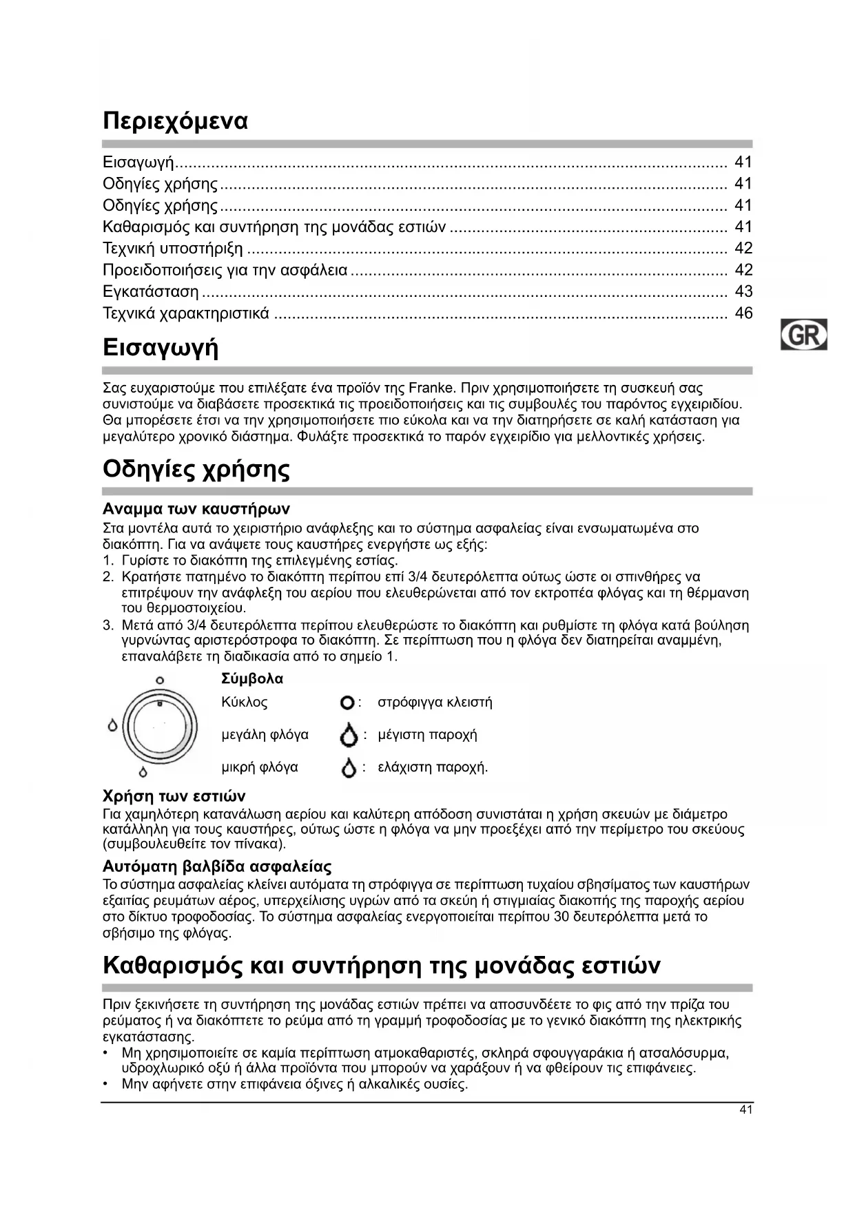 πρώτα τη σωστή ρύθµιση της συσκευής για το χρησιµοποιούµενο τύπο αερίου.44