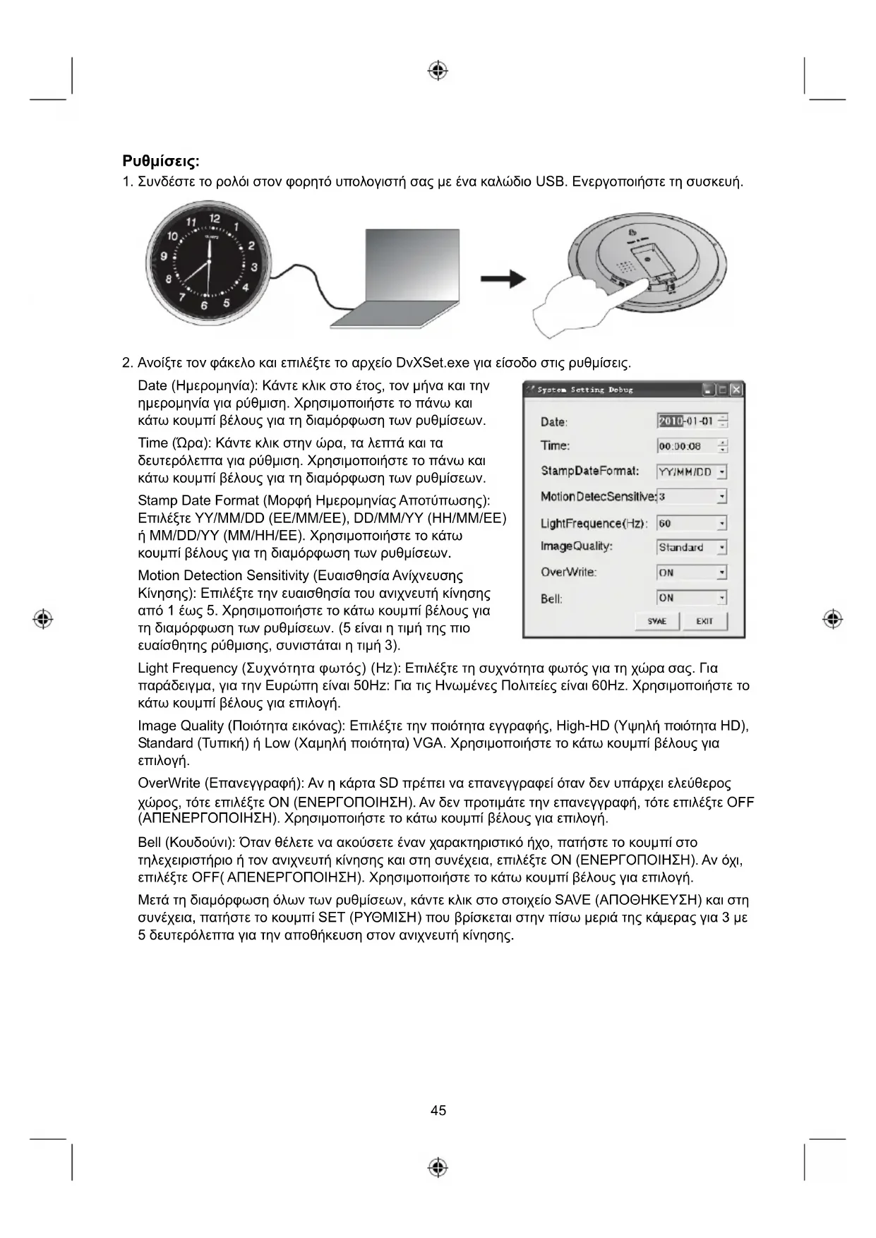 Time (Opa): KávTE KLIK OTNV ωpa, Ta λεTTa KAI TA δεutepoλεTTa γia puθμion. XpnoiμoTOnIσe To Tavw KAI KATW KOUPTI βΕλOUS γia TN διαροφωη Tuv puθμioεωv.