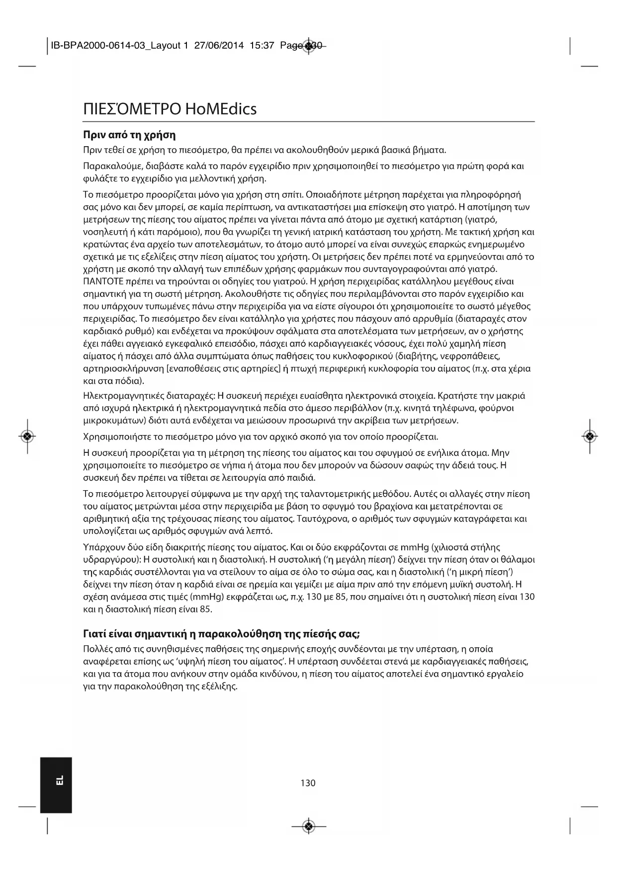 Το πιεσόετρο προορίζεται όνο για χρήση στη σπίτι. Οποιαδήποτε έτρηση παρέχεται για πληροφόρησή