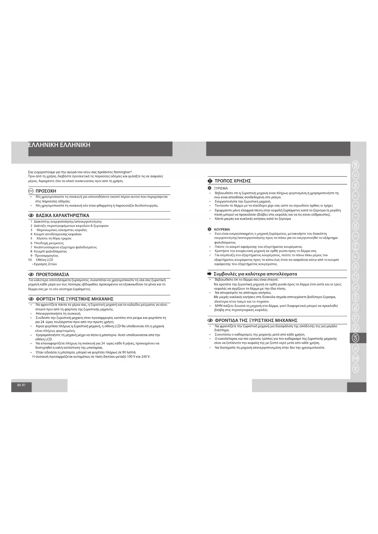 Σας ευχαριστούμε για την αγορά του νέου σας προϊόντος Remington®.
