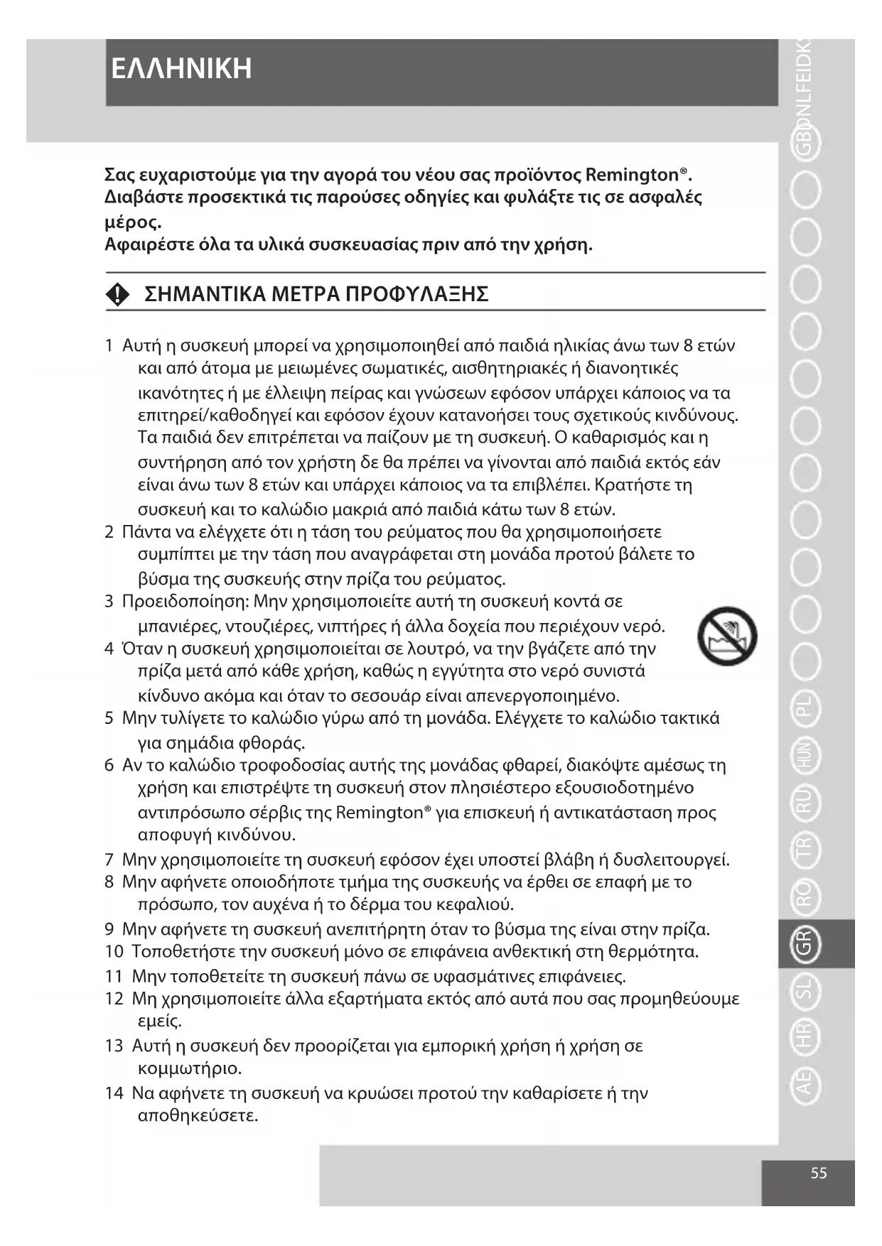 Σας ευχαριστούμε για την αγορά του νέου σας προϊόντος Remington®.