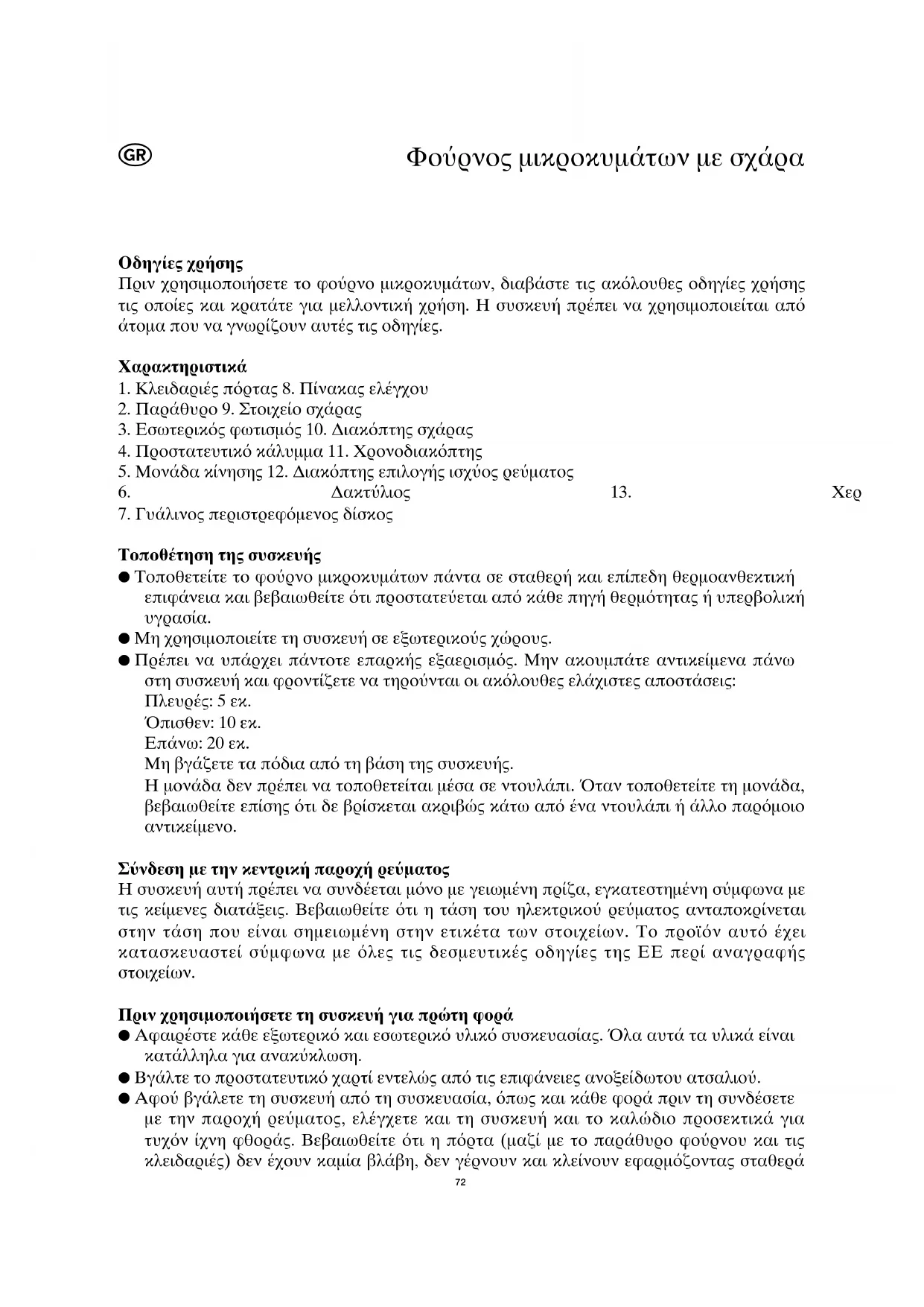 Πριν χρησιμοποισετε το φορνο μικροκυμτων, διαβστε τις ακλουθες οδηγες χρσης