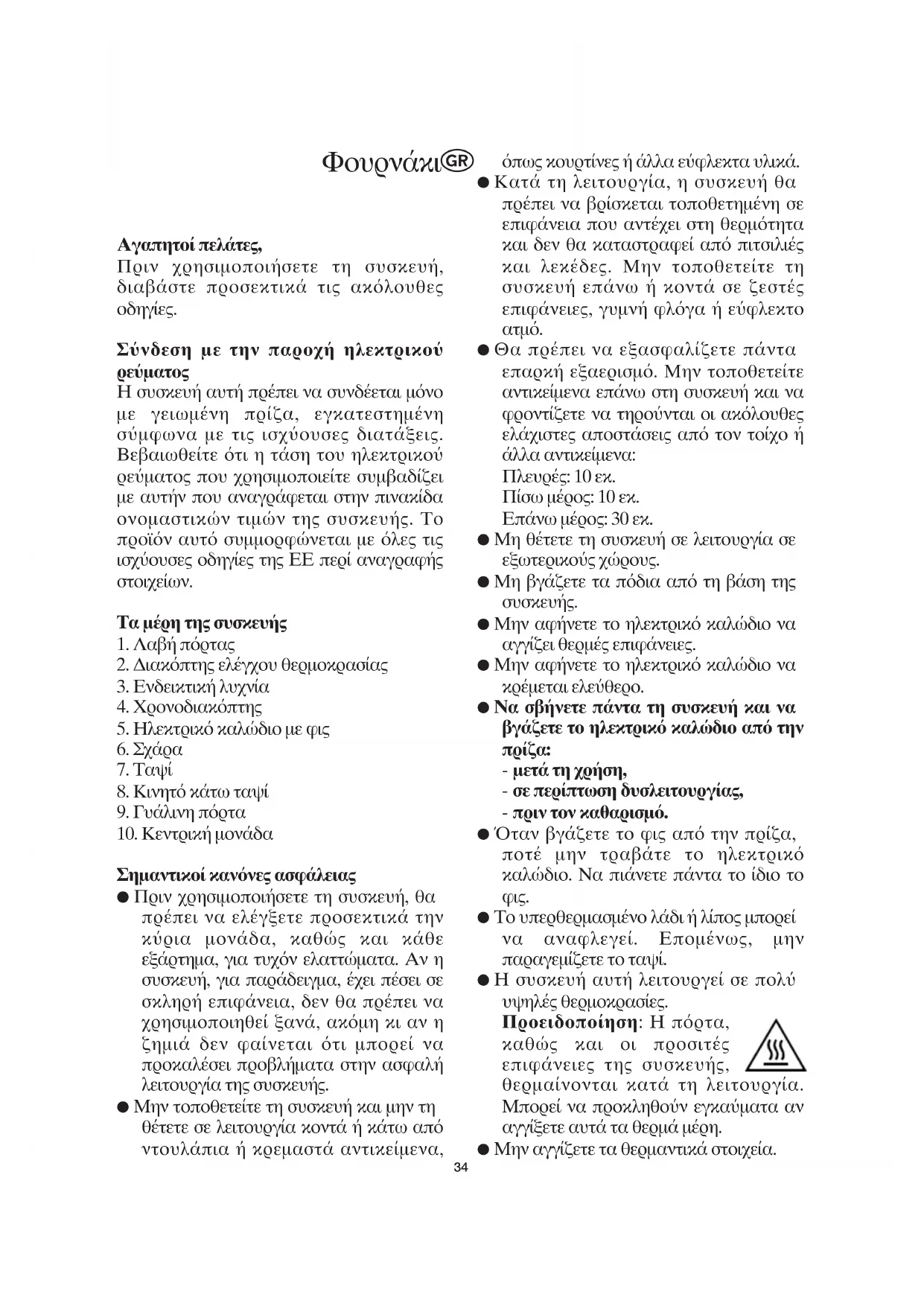 ● Μην αγγζετε τα θερμαντικ στοιχεα.
