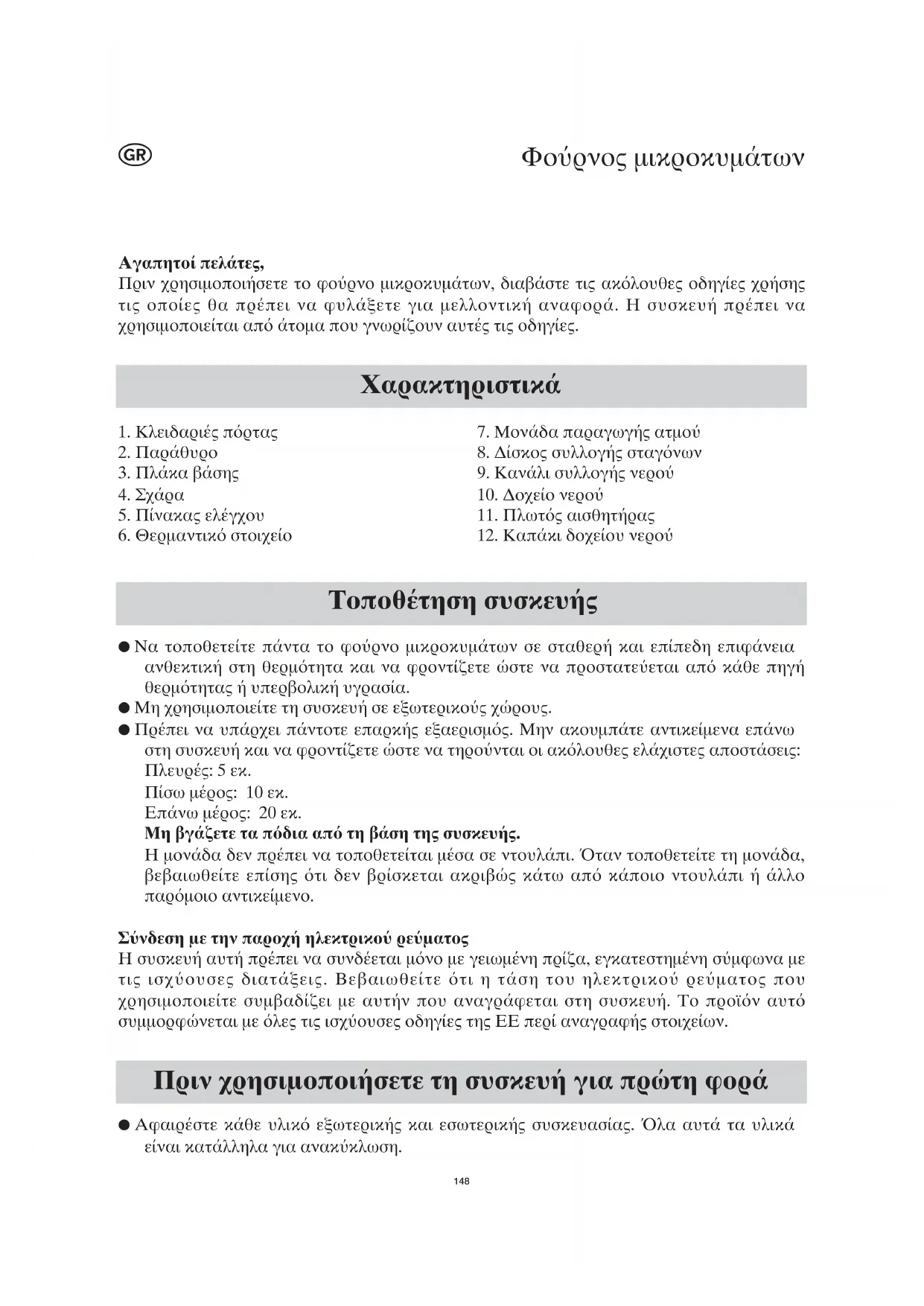 Πριν χρησιμοποισετε το φορνο μικροκυμτων, διαβστε τις ακλουθες οδηγες χρσης