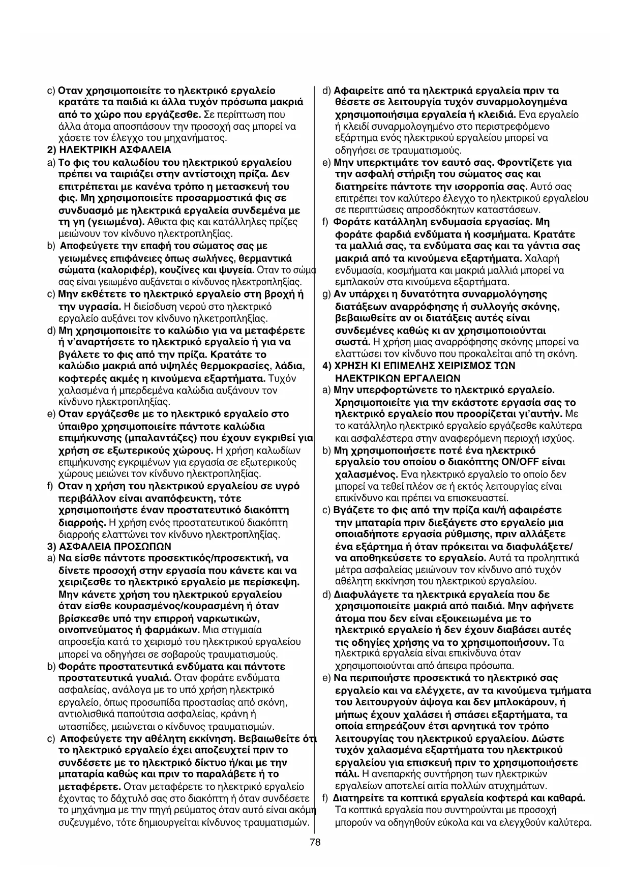 b) Μην εργάζεσθε με το ηλεκτρικό εργαλείο σε