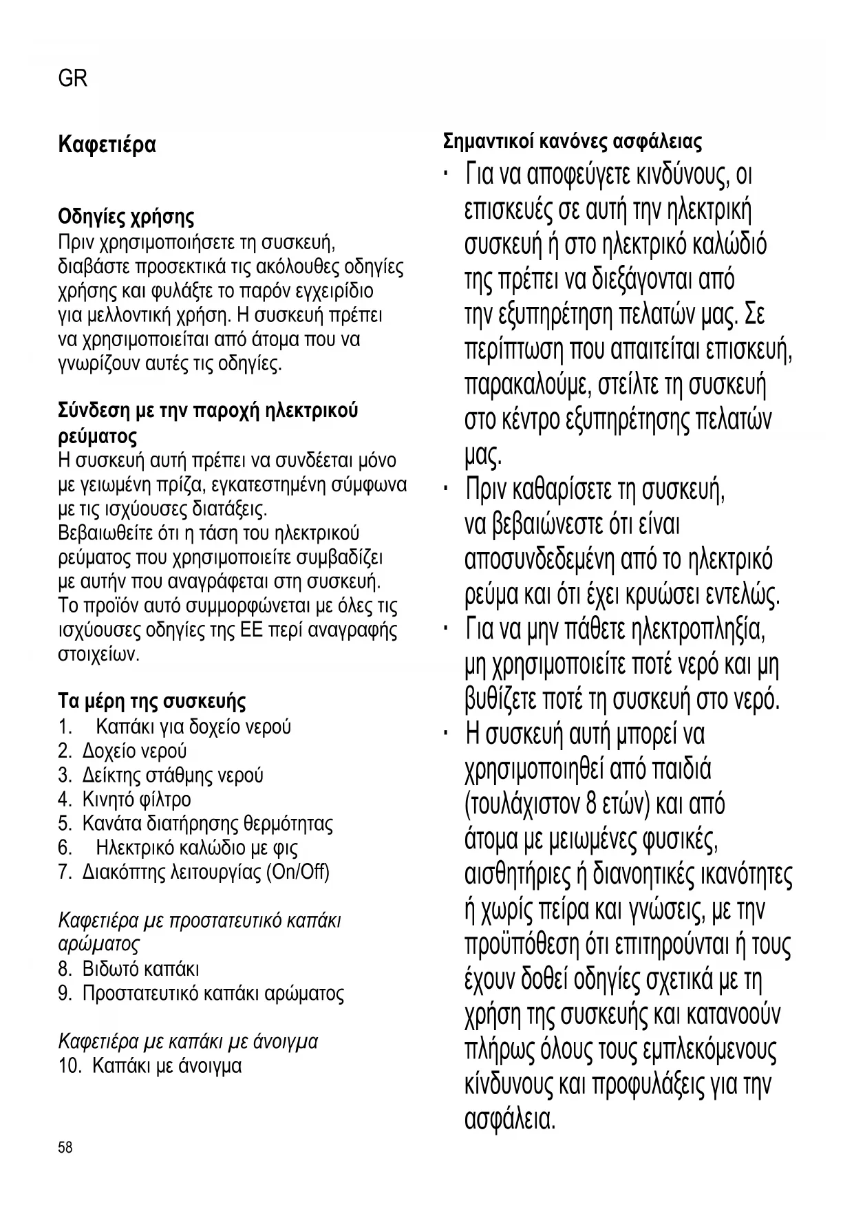 ∙ Κατά τη λειτουργία, η καφετιέρα πρέπει