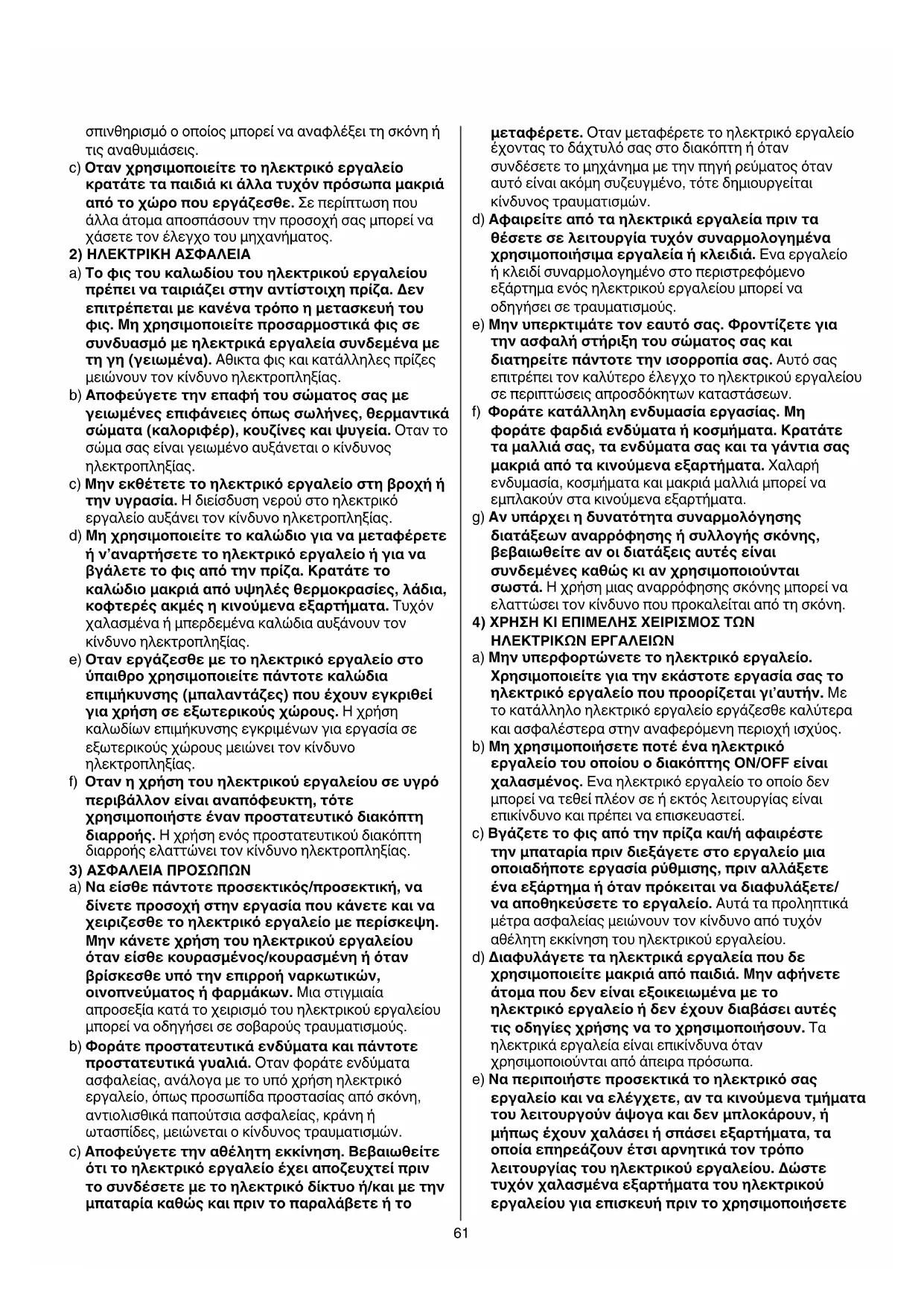 b) Μην εργάζεσθε με το ηλεκτρικό εργαλείο σε