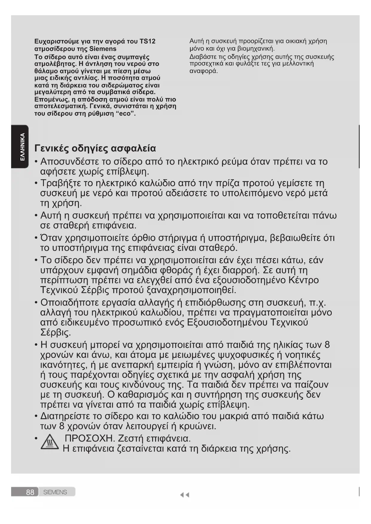 Μπορείτε να μεταφορτώσετε αυτό το εγχειρίδιο από τη τοπική ιστοσελίδα της Siemens.96 S I E M E N STÜRKÇE Siemens TS12 buharlı ütüyü satın aldığınız