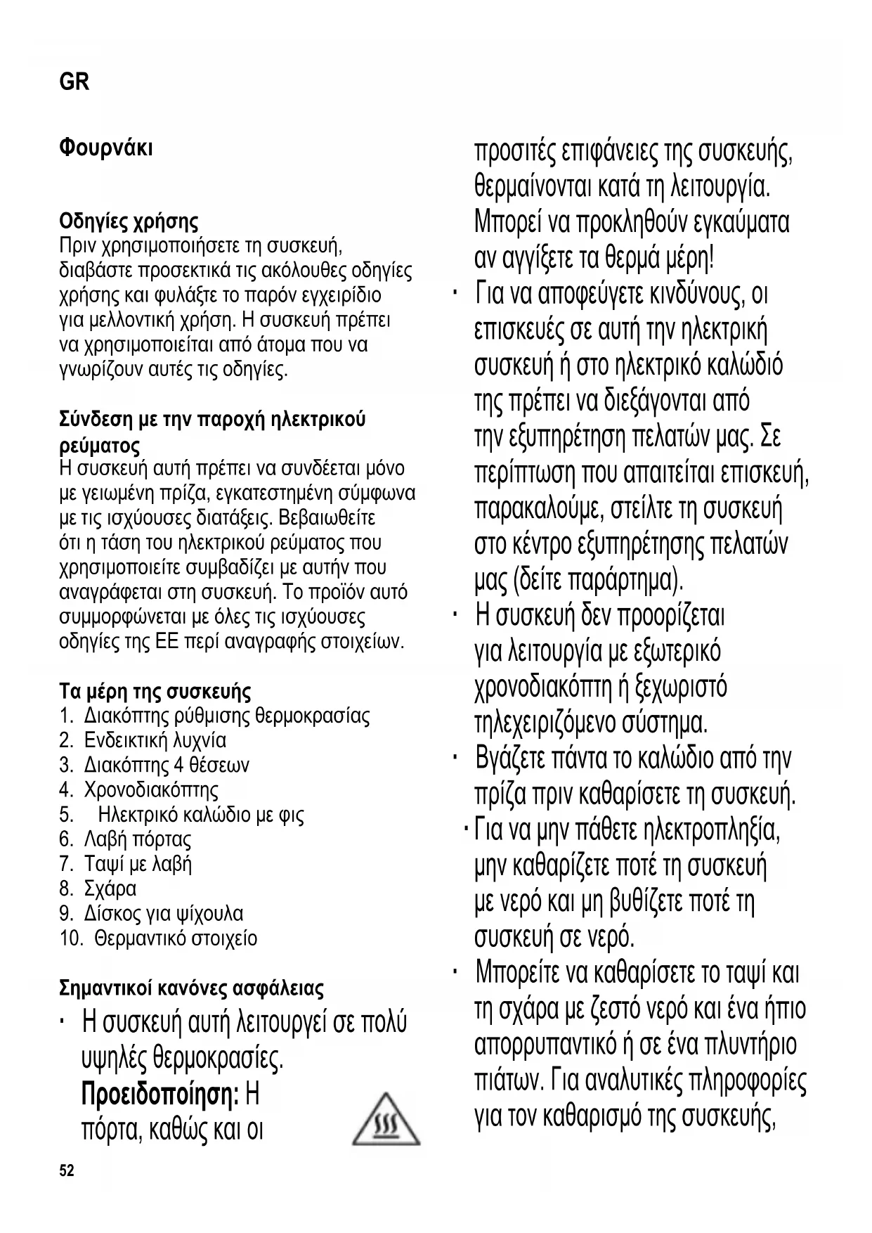 αν αγγίξετε τα θερμά μέρη!