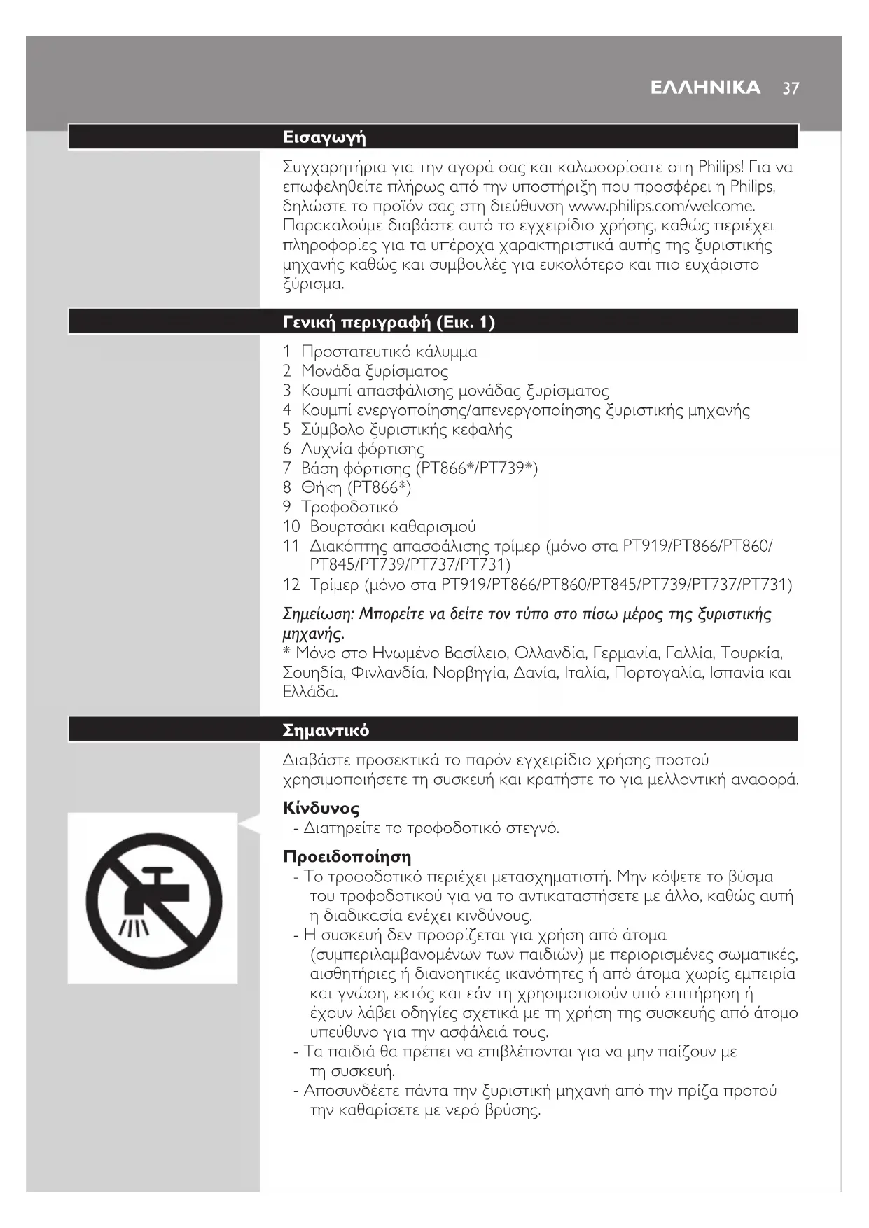 - Αποσυνδέετε πάντα την ξυριστική μηχανή από την πρίζα προτού