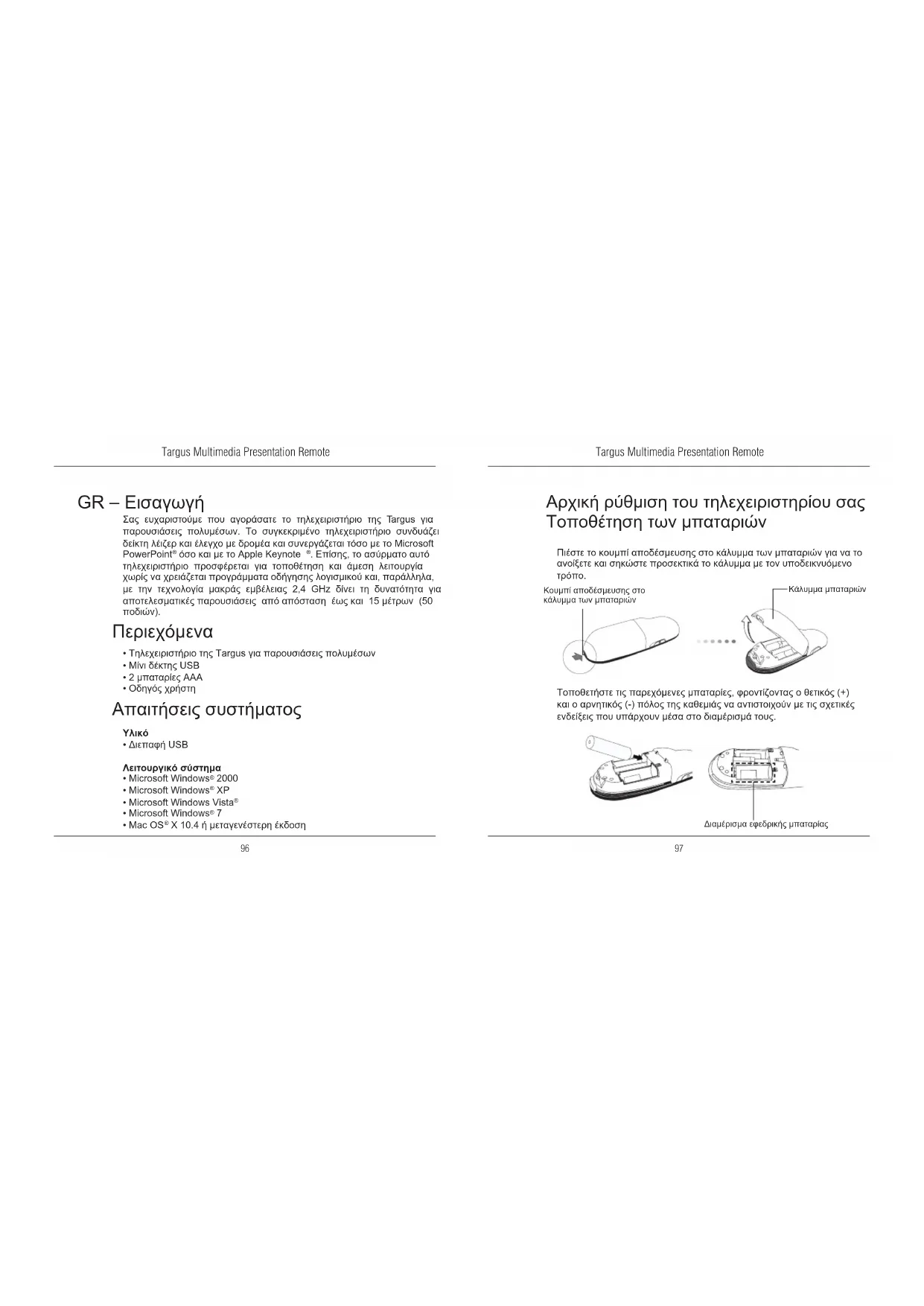 Σας ευχαριστούμε που αγοράσατε το τηλεχειριστήριο της Targus για