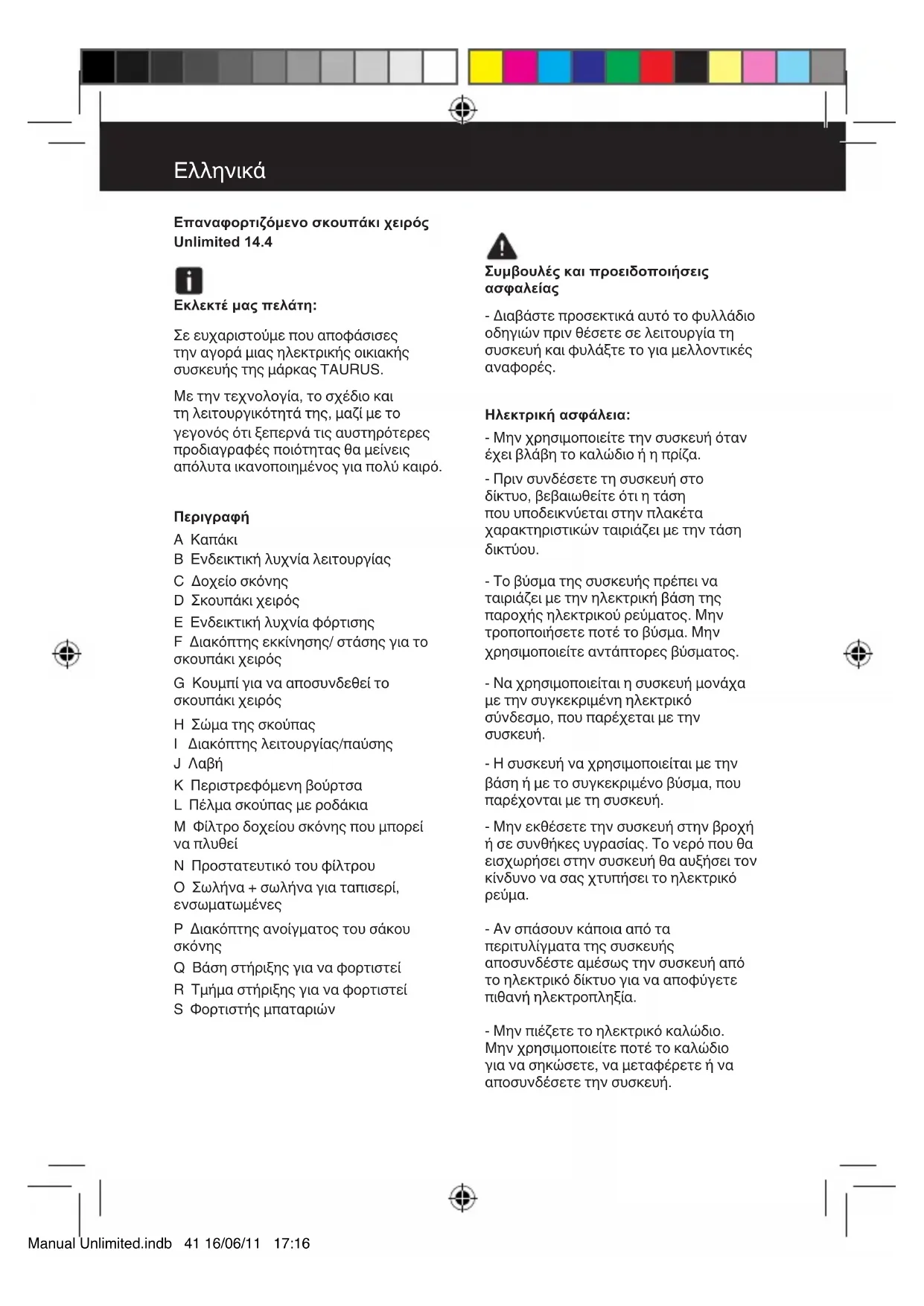 Unlimited 14.4 - Ηλεκτρική σκούπα TAURUS - Δωρεάν εγχειρίδιο χρήσης