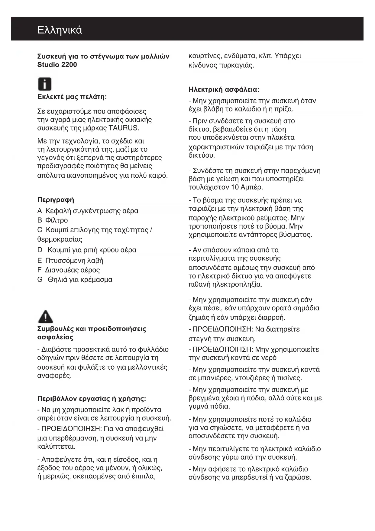 Studio 2200 - Πιστολάκι μαλλιών TAURUS - Δωρεάν εγχειρίδιο χρήσης