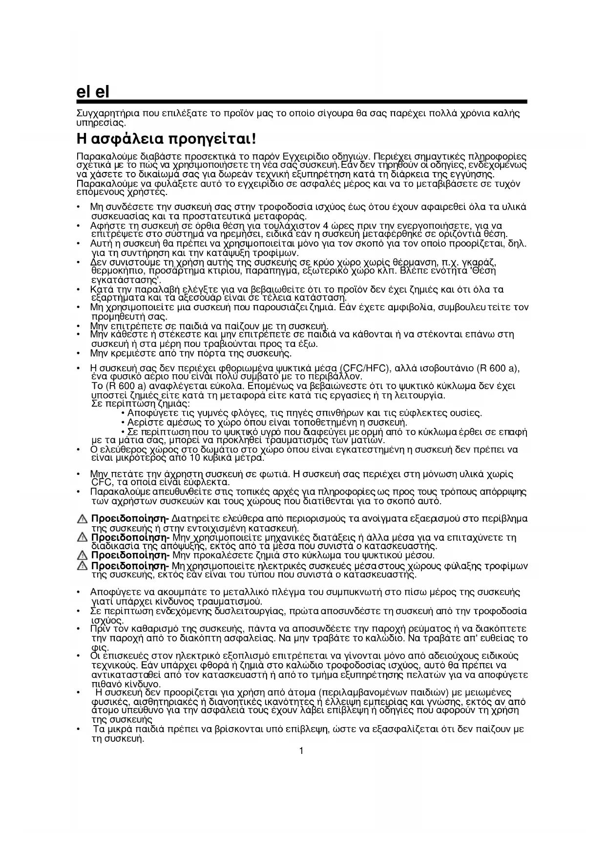 • Σε περίπτωση ενδεχόμενης δυσλειτ ουργίας, πρώτα αποσυνδέστε τη συσκευή από την τροφοδοσία