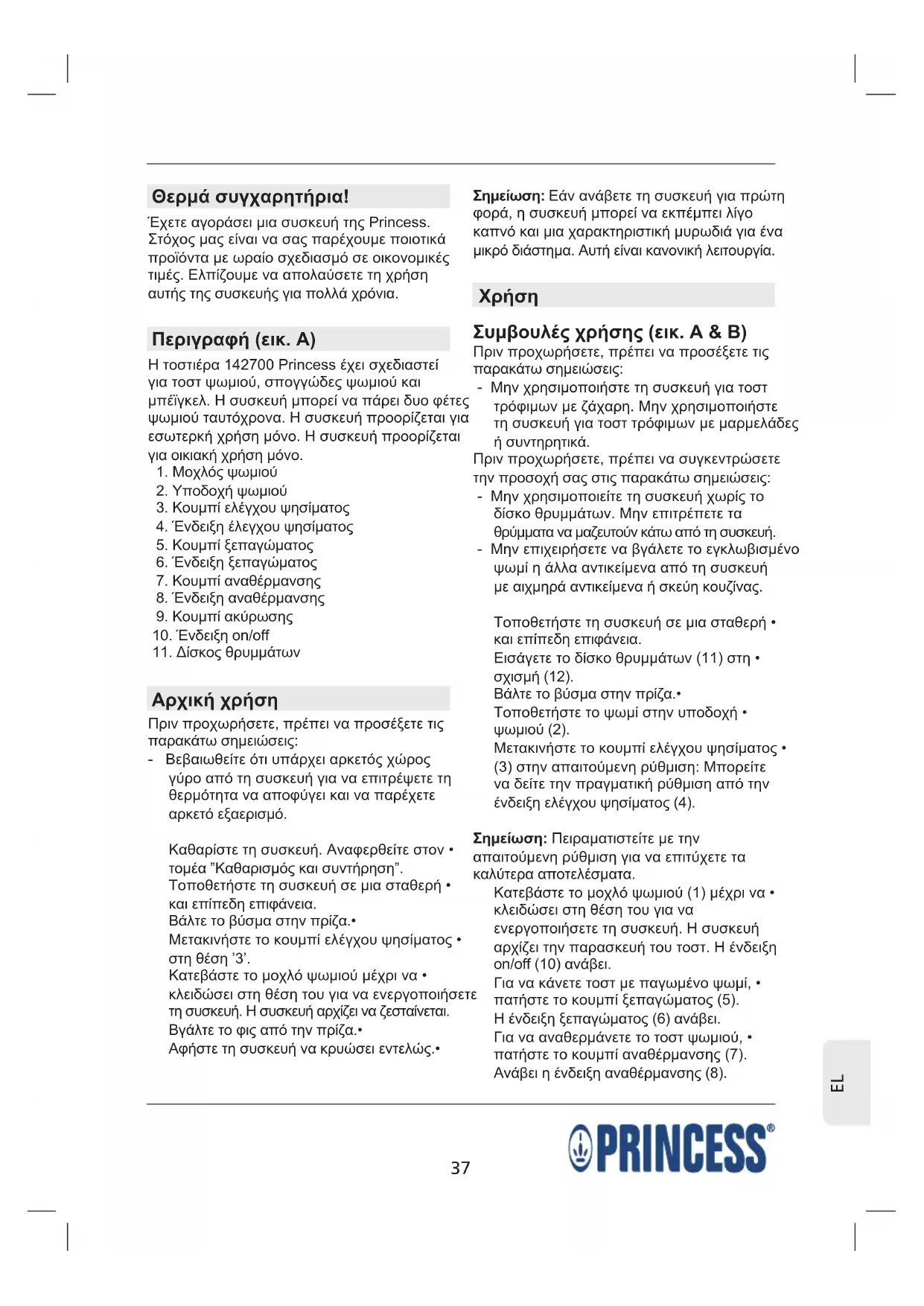 - Μην χρησιμοποιήστε τη συσκευή για τοστ