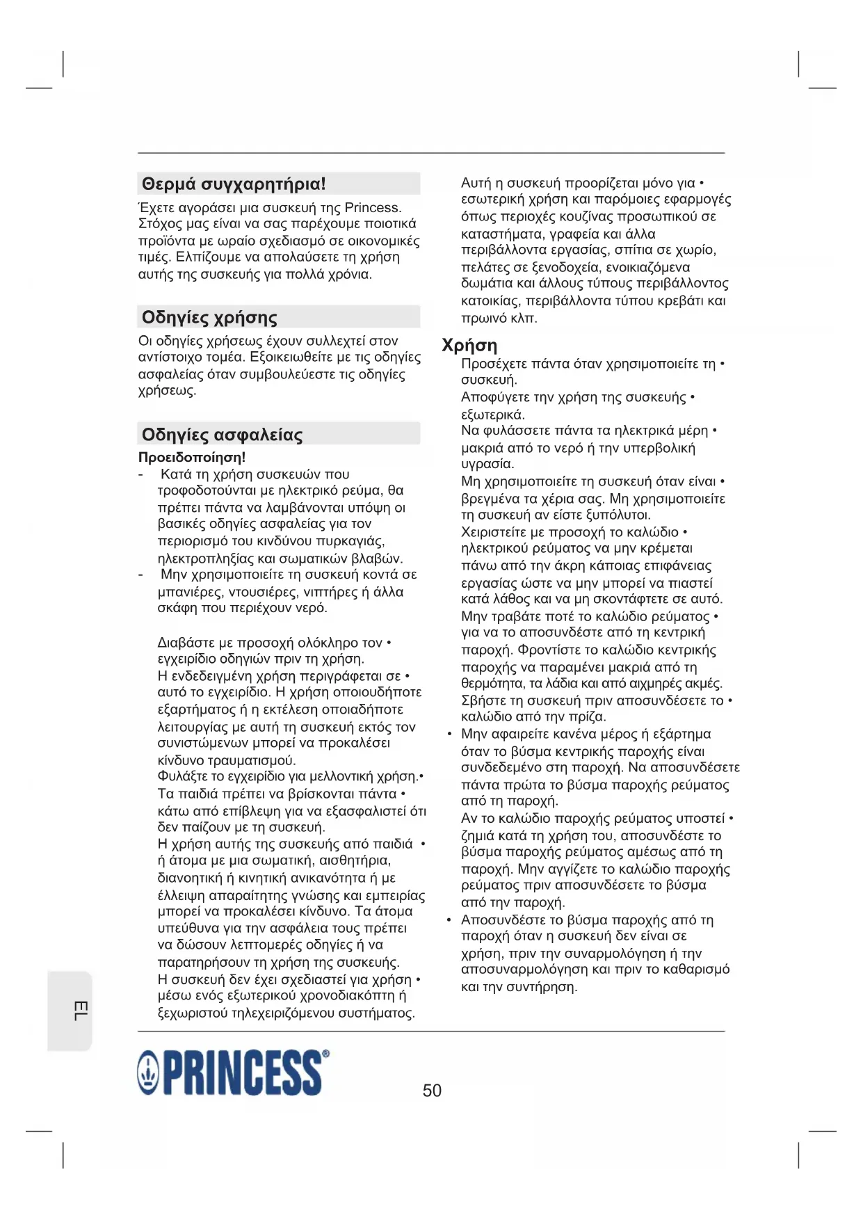 ΕΓΧΕΙΡΊΔΙΟ ΧΡΉΣΗΣ 242614 PRINCESS
