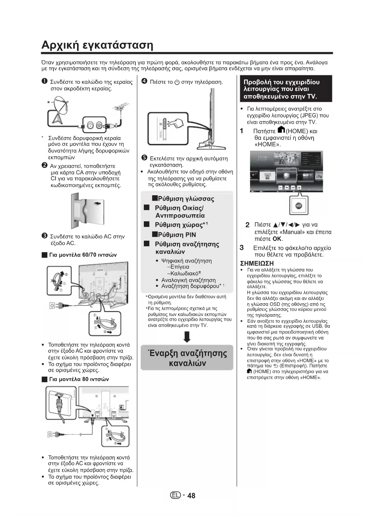 • Το σχήμα του προϊόντος διαφέρει σε ορισμένες χώρες. H Για μοντέλα 80 ιντσών