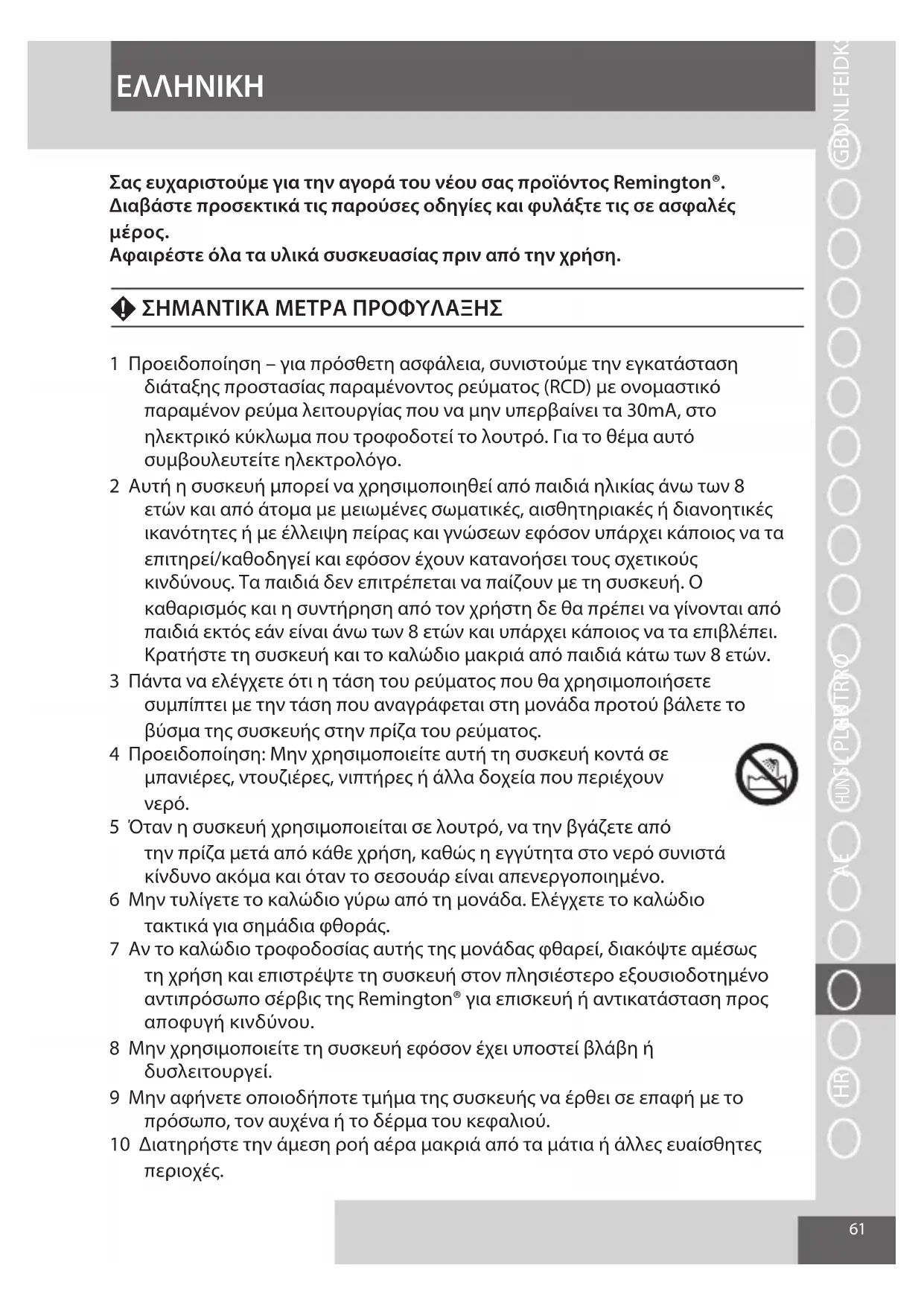 Σας ευχαριστούμε για την αγορά του νέου σας προϊόντος Remington®.
