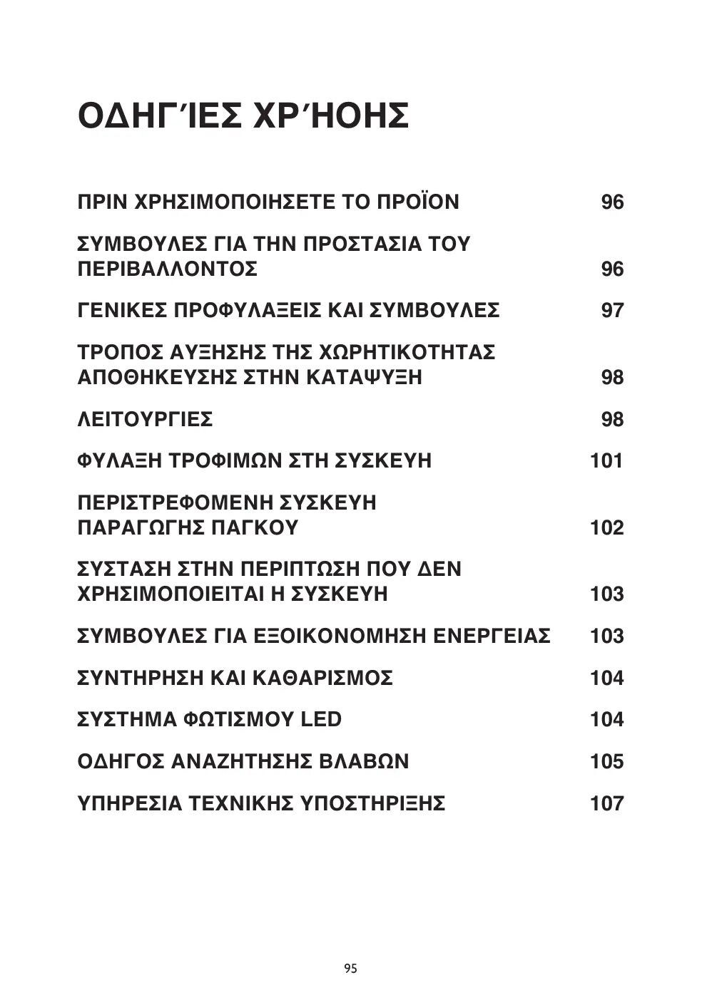 ÉCLAIRAGE À LED L'intérieur du congélateur est éclairé par des LED, qui assurent un éclairage de qualité tout en réduisant la consommation d'énergie. Si le système d'éclairage à LED ne fonctionne pas, contactez le service après-vente pour le faire remplacer.