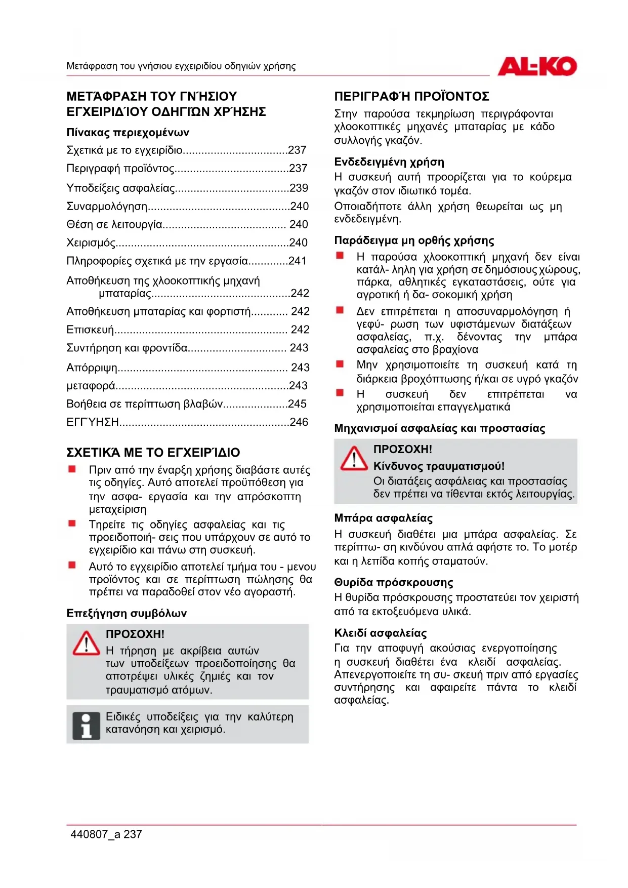 EL Μετάφραση του γνήσιου εγχειριδίου οδηγιών χρήσης237