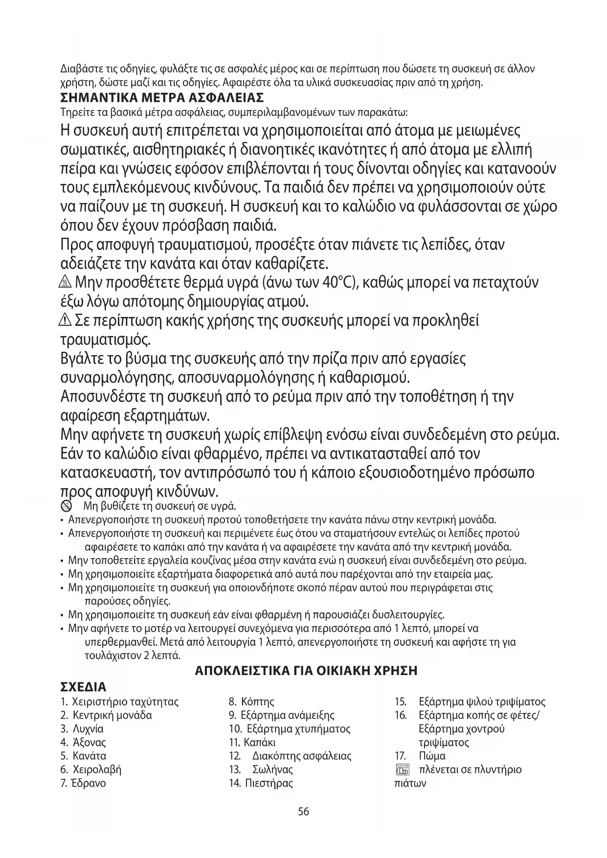 ` Μπορείτε, αν θέλετε, να πλύνετε αυτά τα εξαρτήματα στο πλυντήριο πιάτων.59