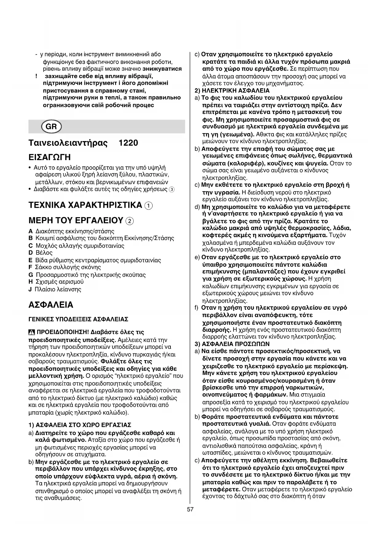 αναφέρεται σε ηλεκτρικά εργαλεία που τροφοδοτούνται