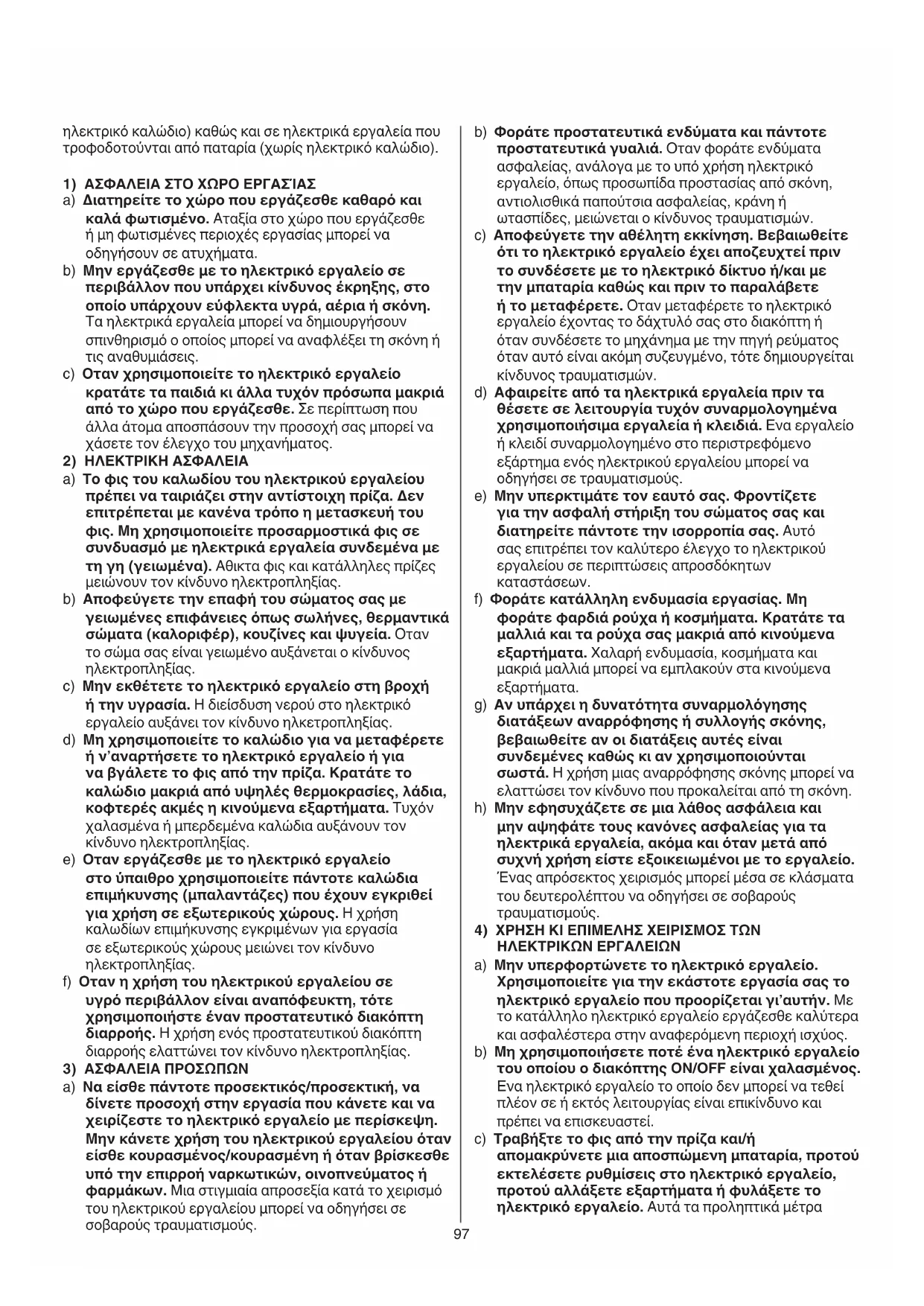b) Μη χρησιμοποιήσετε ποτέ ένα ηλεκτρικό εργαλείο