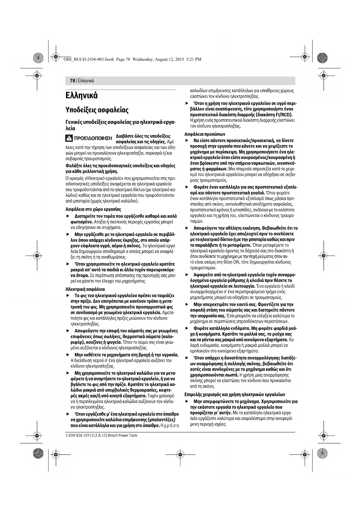 OBJ_BUCH-2456-001.book Page 77 Wednesday, August 12, 2015 3:21 PM78 | Eλληνικά 1 609 92A 16Y | (12.8.15) Bosch Power Tools Ελληνικά