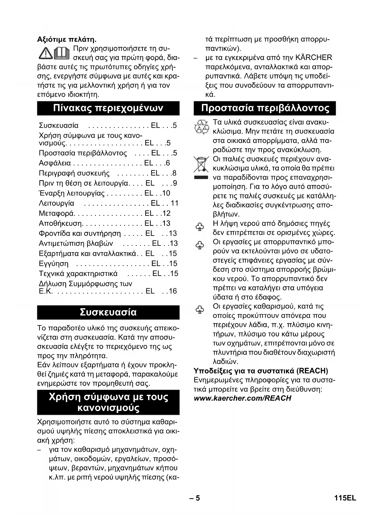Χρήση σύμφωνα με τους κανονισμούς Προστασία περιβάλλοντος 115EL– 6
