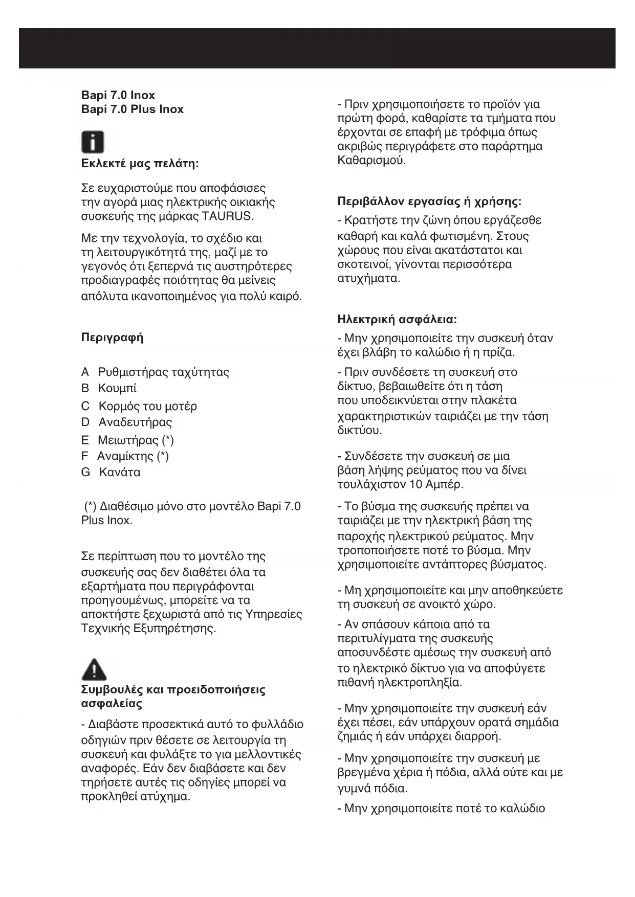 Bapi 7.0 Plus Inox - Μπλέντερ TAURUS - Notice d'utilisation et mode d'emploi gratuit