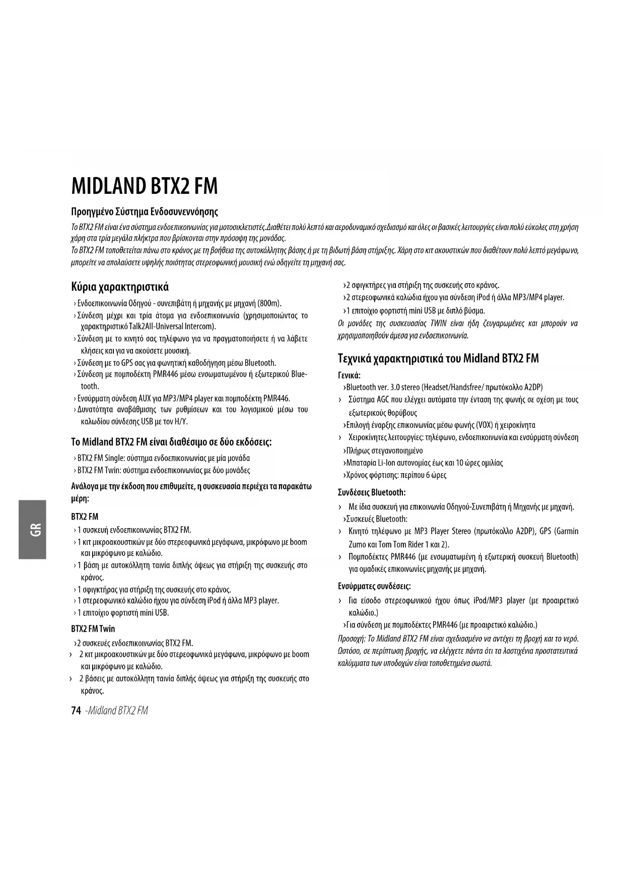 Τεχνικά χαρακτηριστικά του Midland BTX2 FM 74