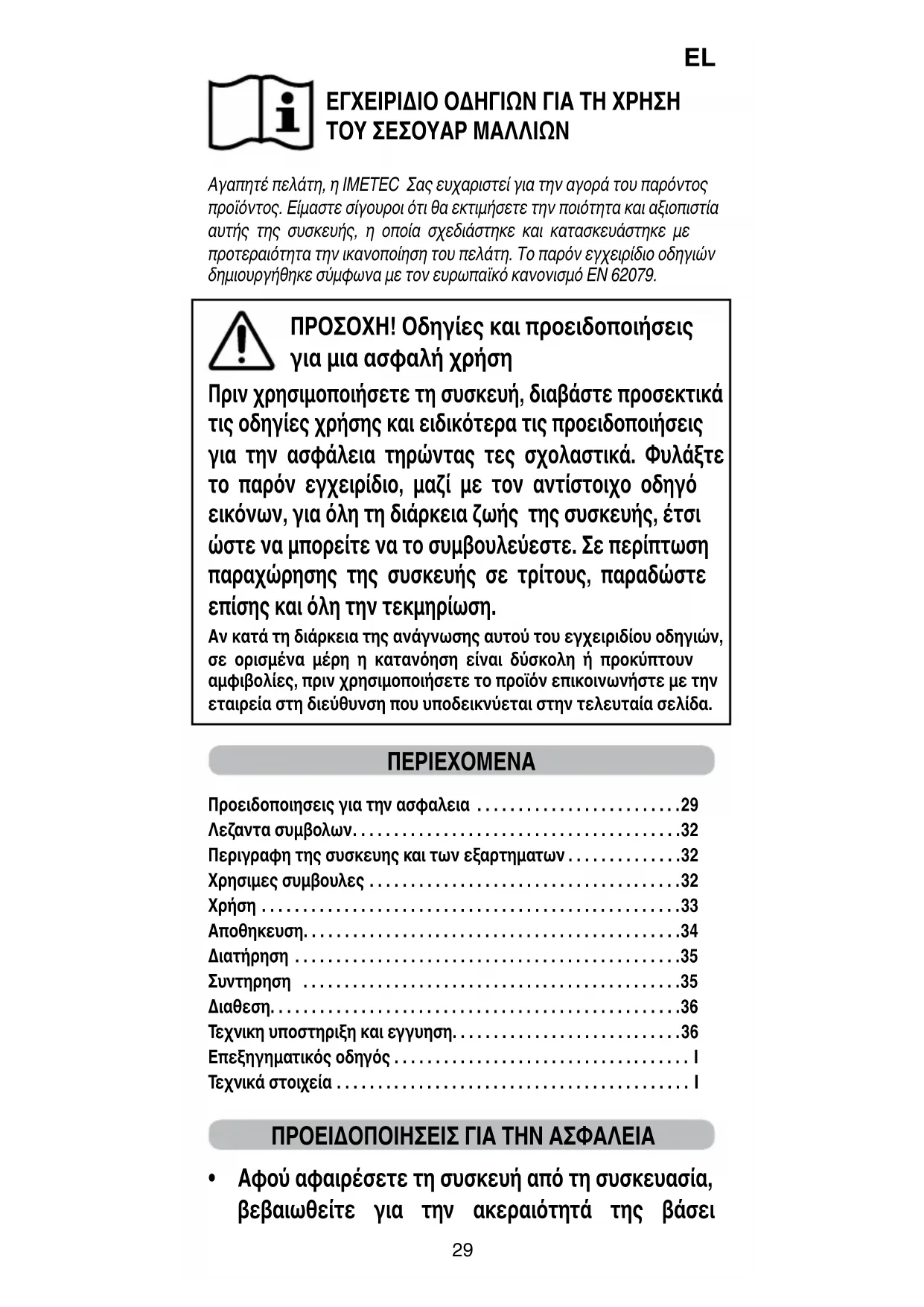 Αγαπητέ πελάτη, η IMETEC Σας ευχαριστεί για την αγορά του παρόντος