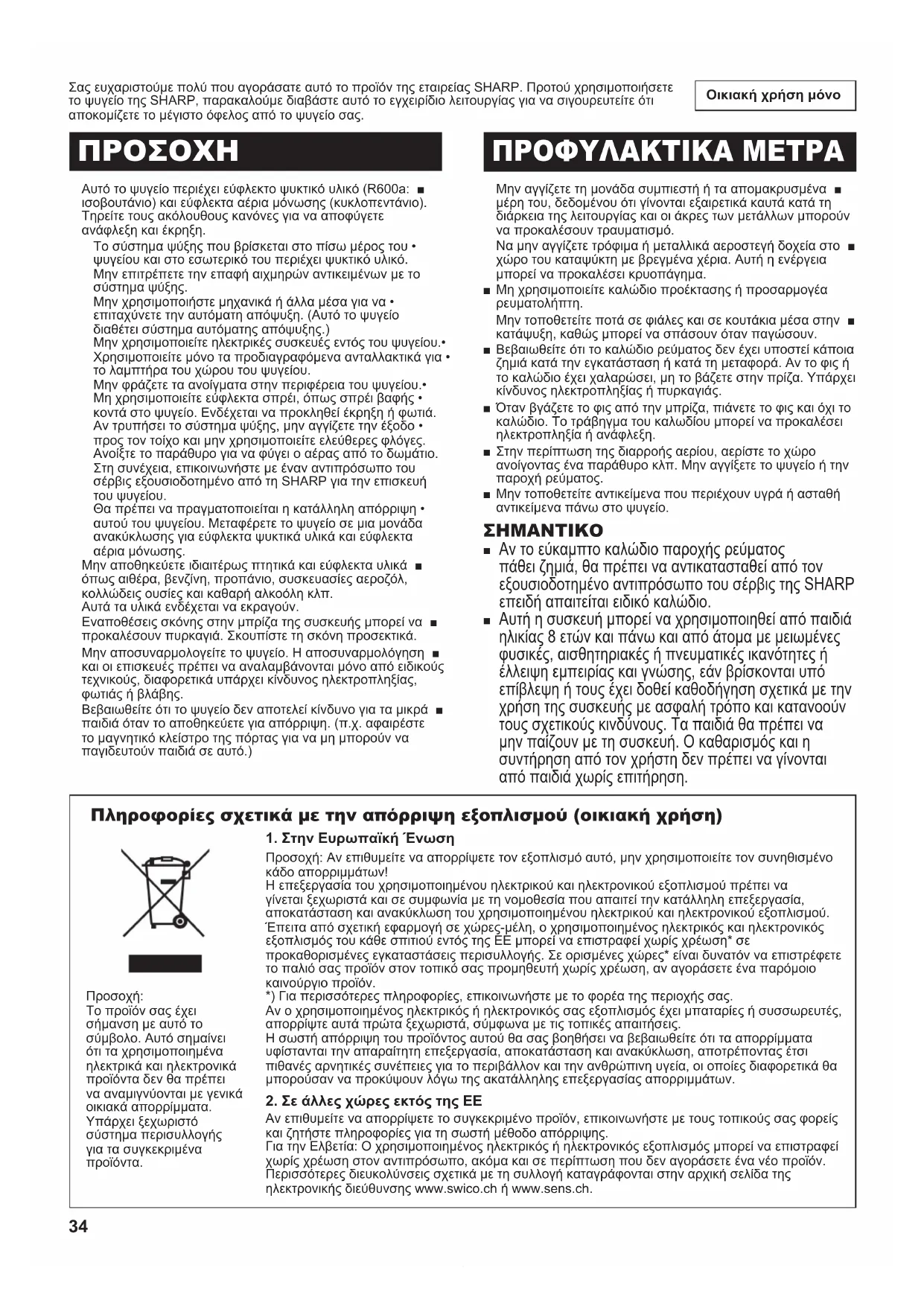 Σας ευχαριστούμε πολύ που αγοράσατε αυτό το προϊόν της εταιρείας SHARP. Προτού χρησιμοποιήσετε