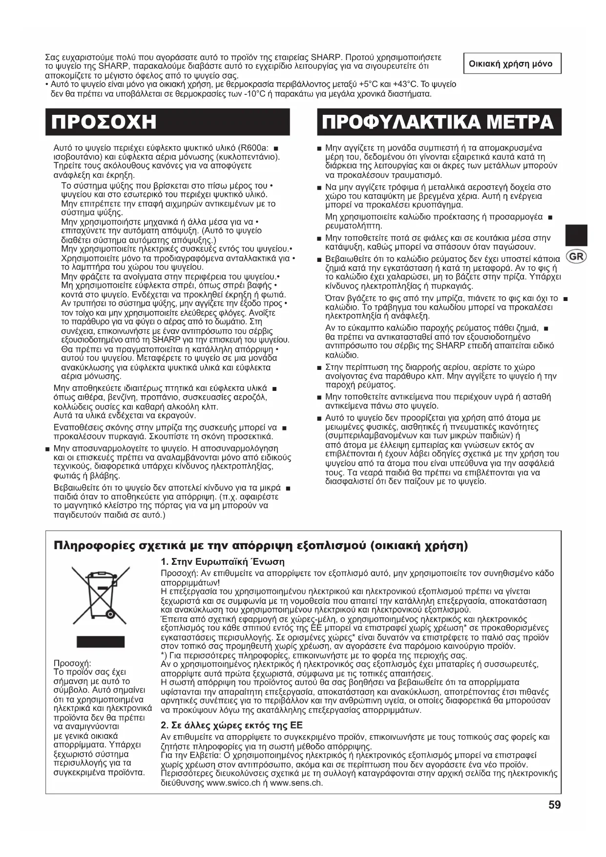 Σας ευχαριστούμε πολύ που αγοράσατε αυτό το προϊόν της εταιρείας SHARP. Προτού χρησιμοποιήσετε