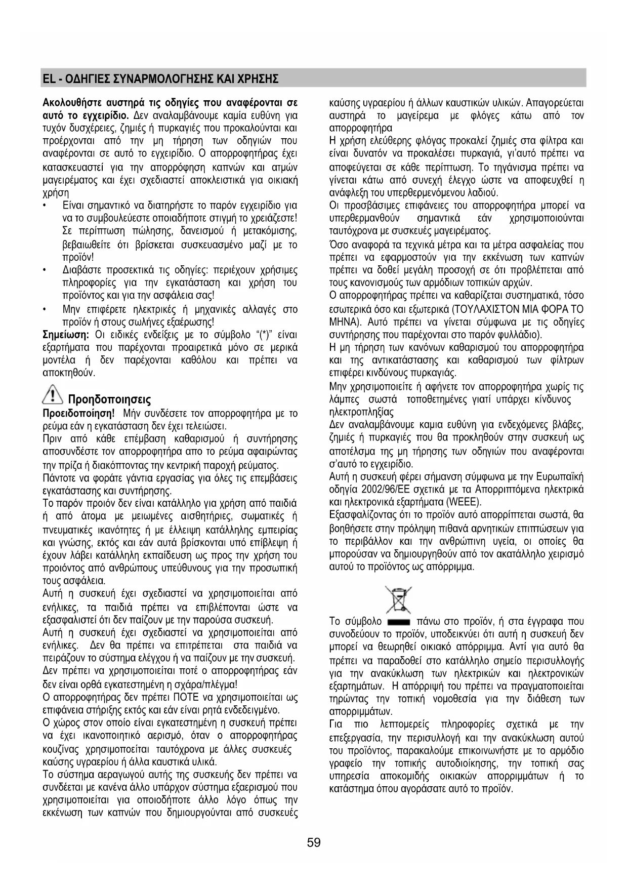 αναφέρονται σε αυτό το εγχειρίδιο. Ο απορροφητήρας έχει