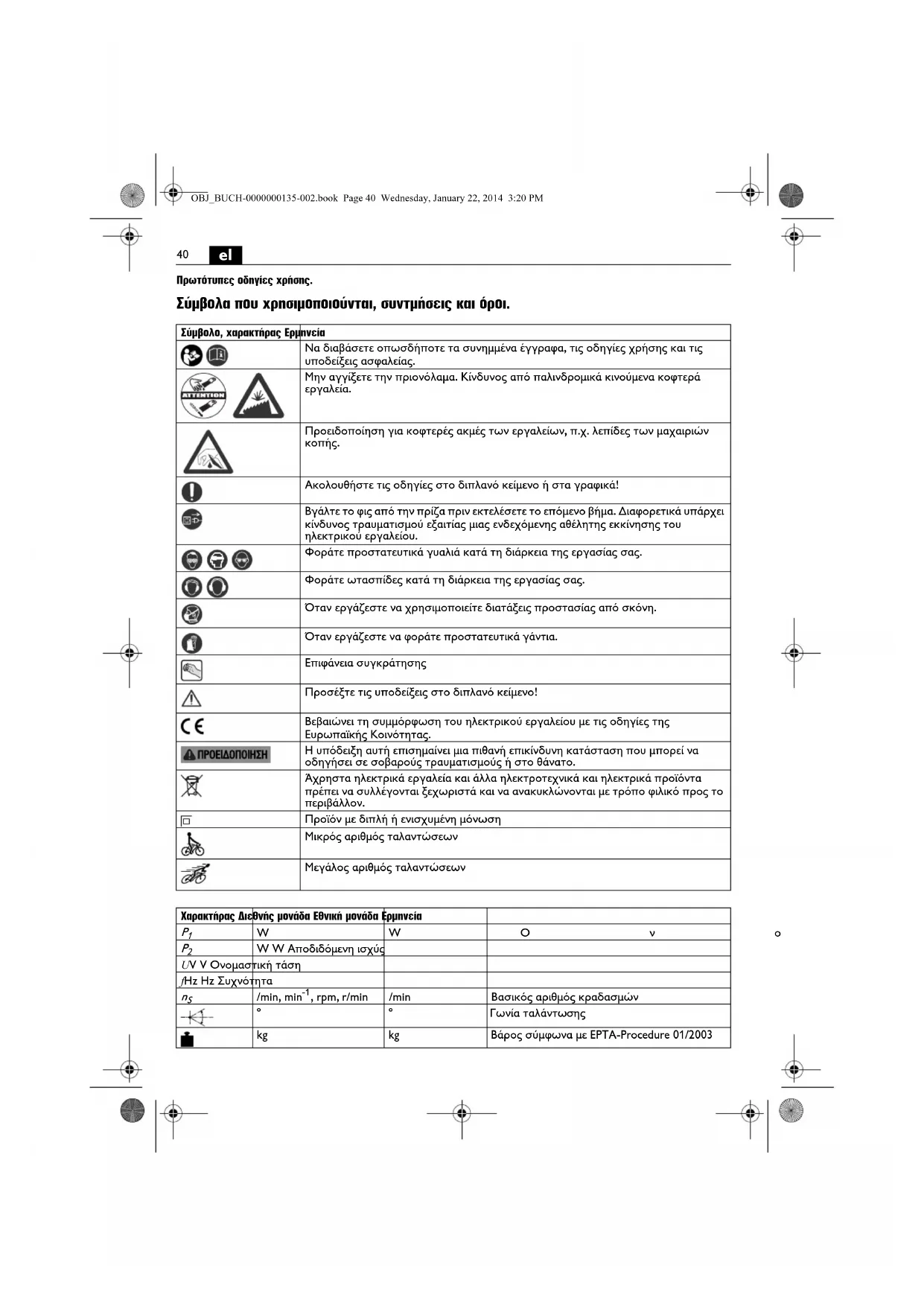 | Σύμβολo | Na διαβάσετε Οηωδόπιοτε τα συνημένα ἐγγραρα, τις Εθηγίες χρήσης και τις Αντοδείξεις ασφαλείας. |