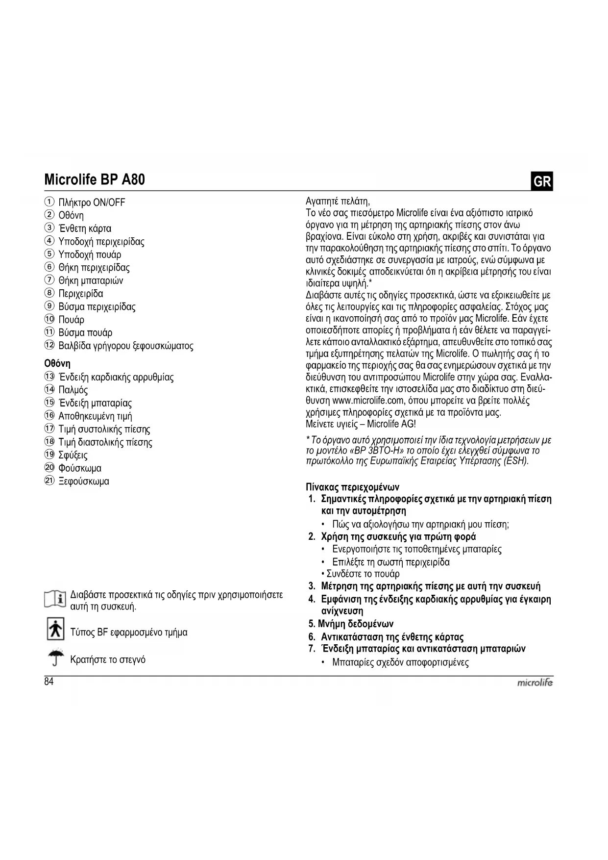 ΕΓΧΕΙΡΊΔΙΟ ΧΡΉΣΗΣ BP A80 MICROLIFE