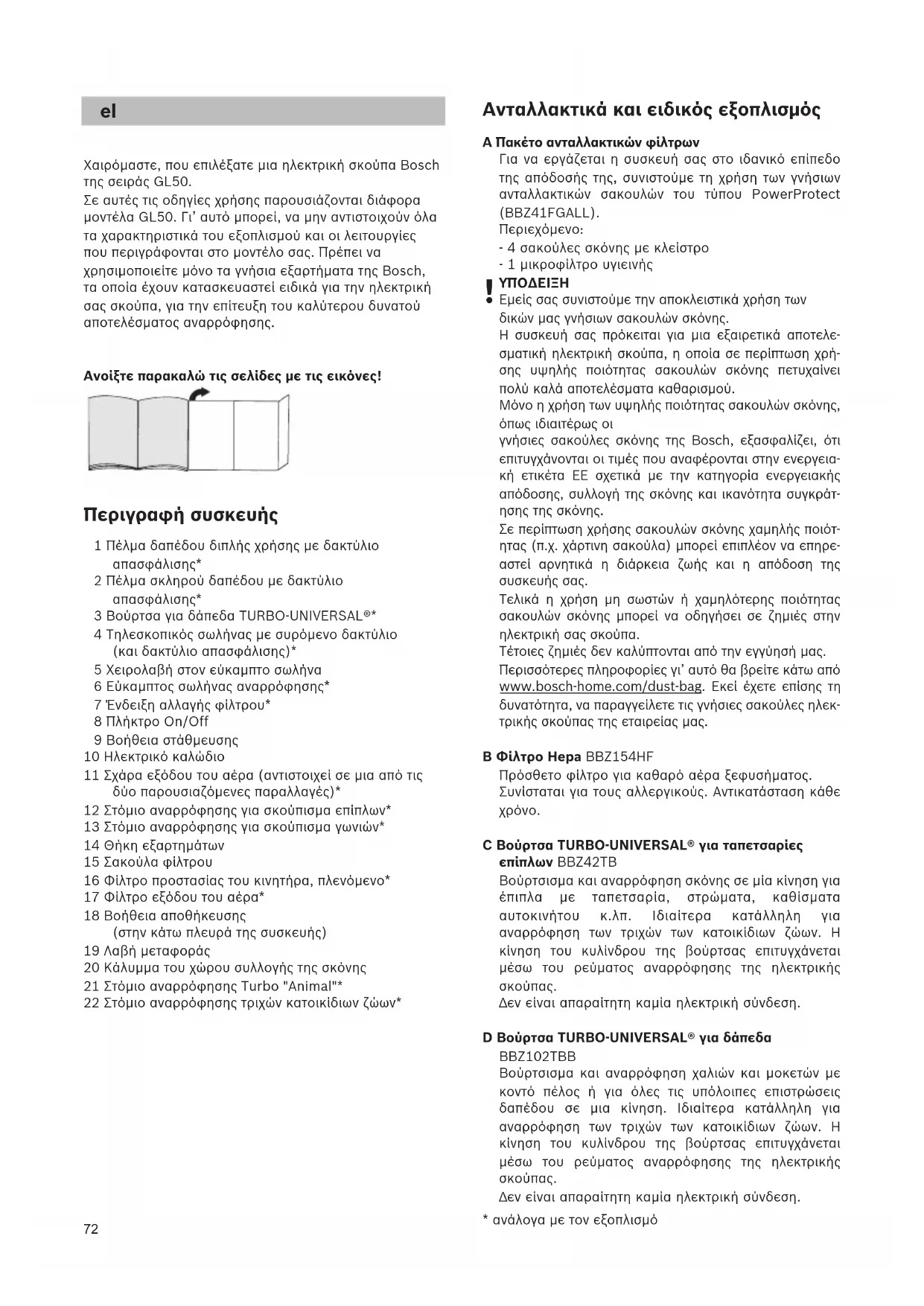 Téléchargez la notice de votre Ηλεκτρική σκούπα au format PDF gratuitement ! Retrouvez votre notice BSGL5310 - BOSCH et reprennez votre appareil électronique en main. Sur cette page sont publiés tous les documents nécessaires à l'utilisation de votre appareil BSGL5310 de la marque BOSCH.