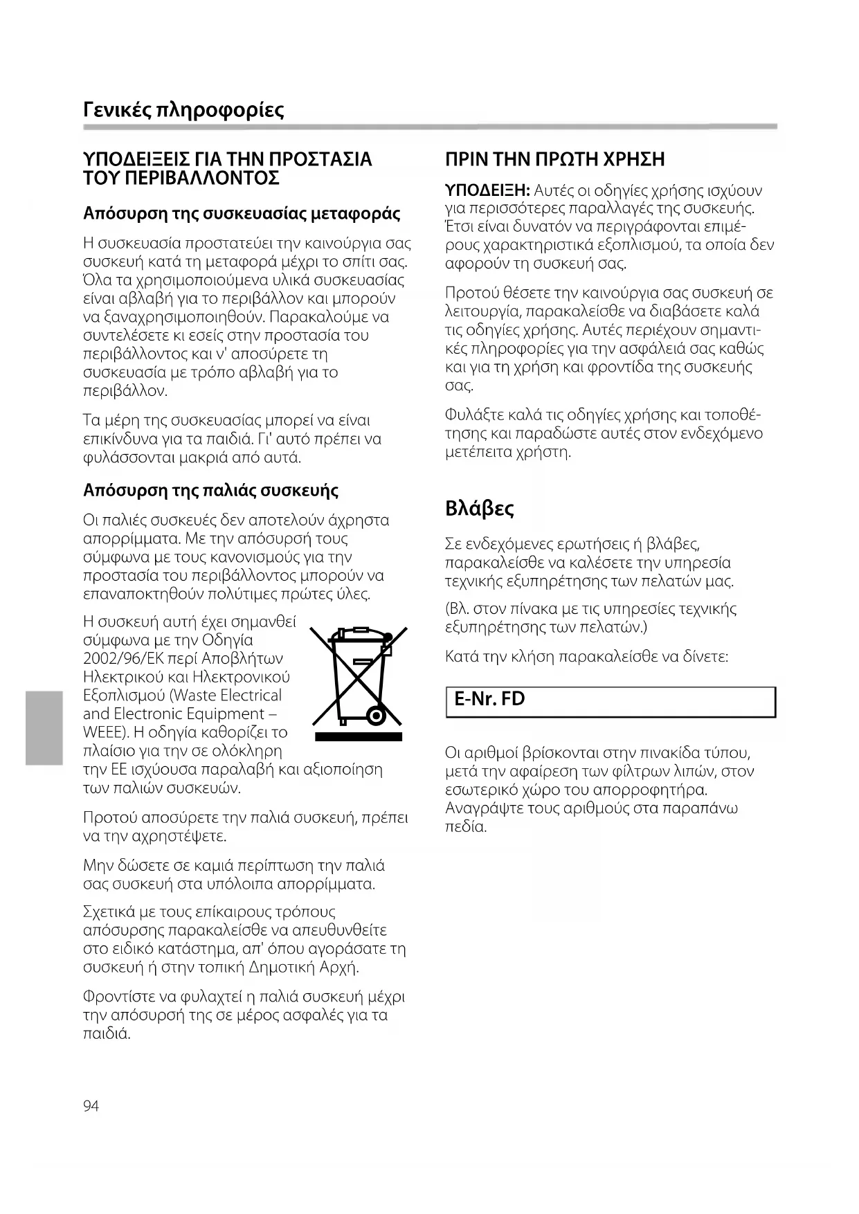 σας συσκευή στα υπόλοιπα απορρίμματα.