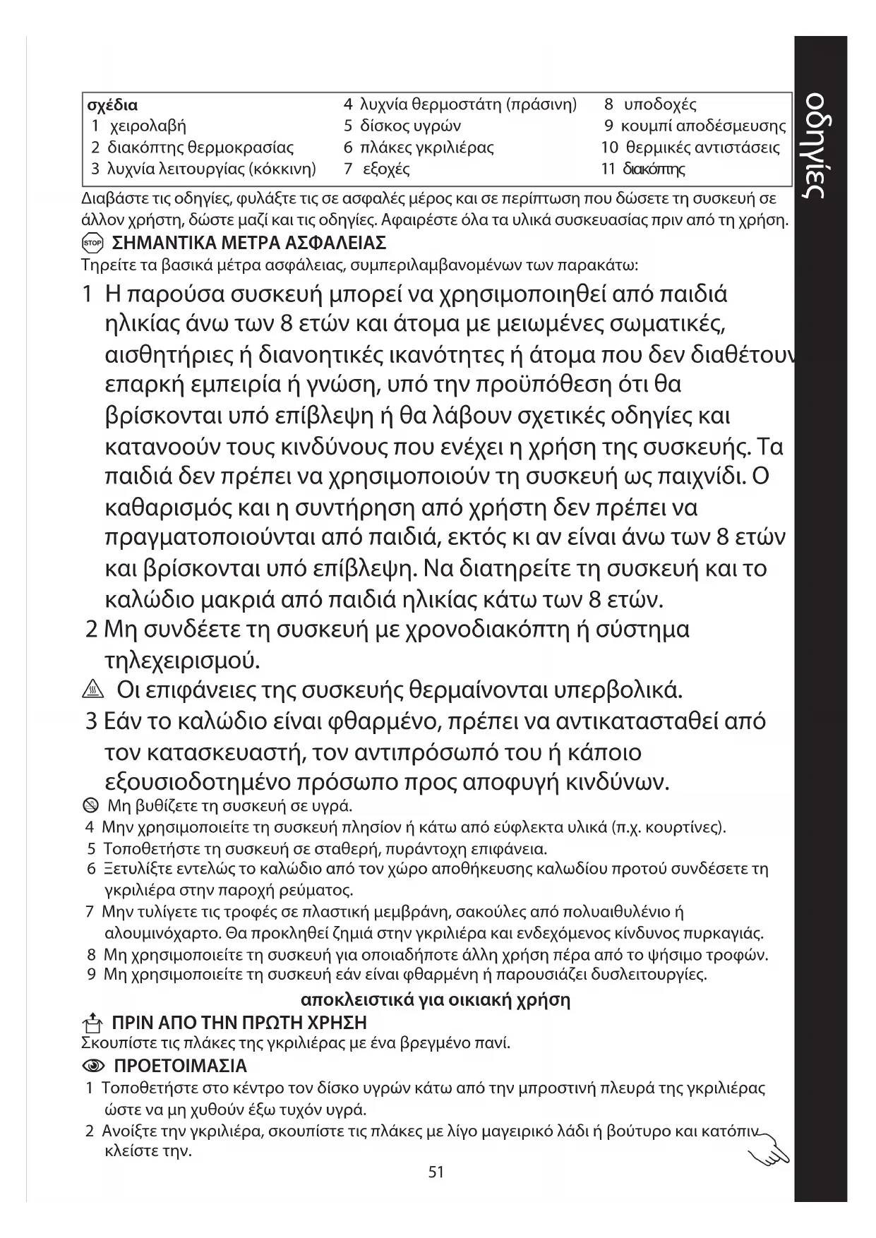 8 Μη χρησιμοποιείτε τη συσκευή για οποιαδήποτε άλλη χρήση πέρα από το ψήσιμο τροφών.