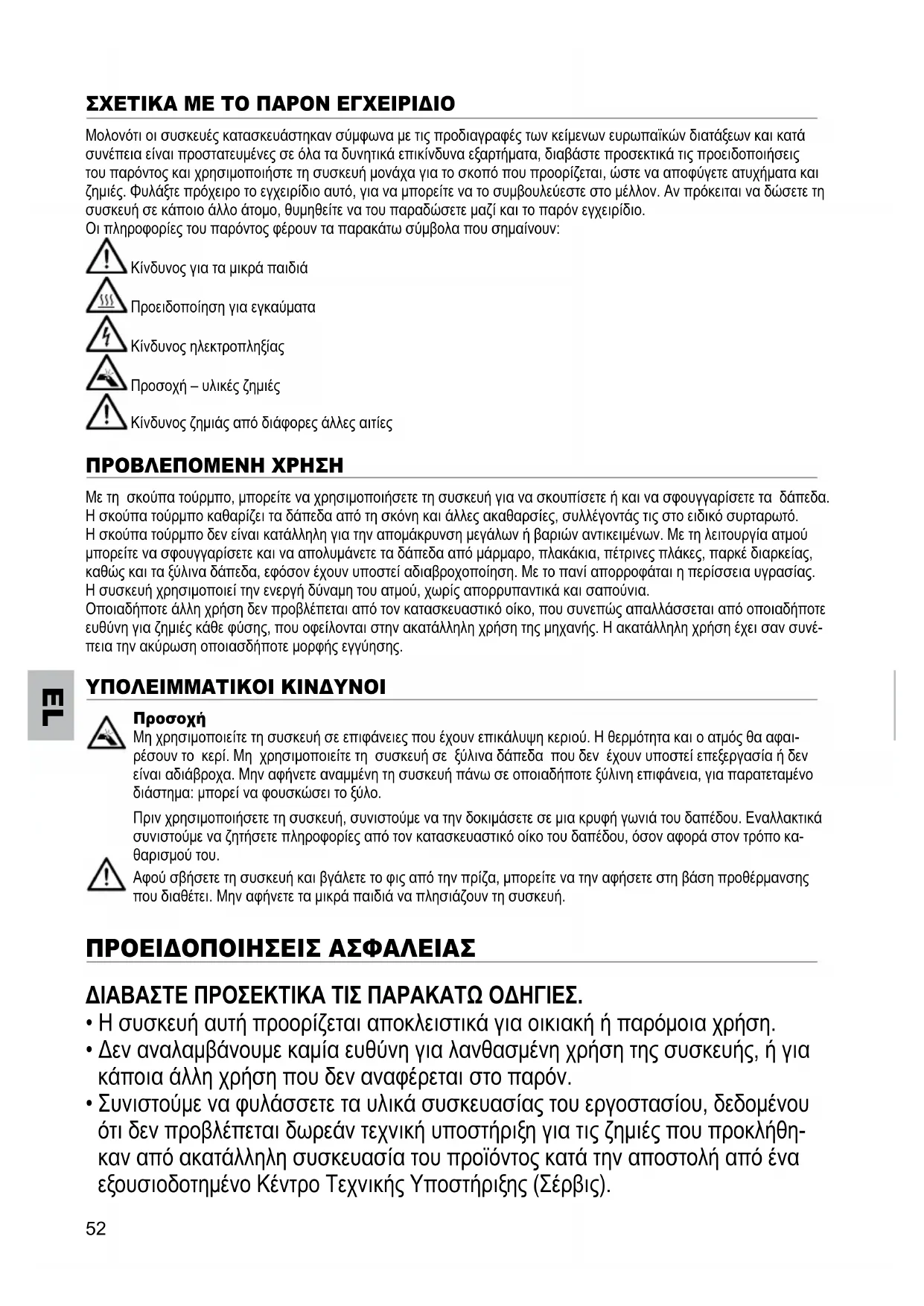 • Η συσκευή αυτή προορίζεται αποκλειστικά για οικιακή ή παρόμοια χρήση.