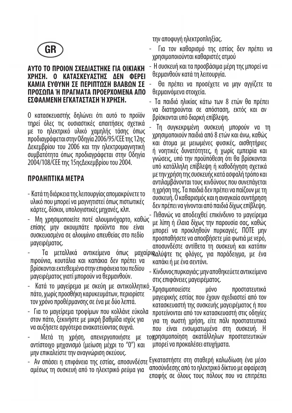 ενέργειας. Ωστόσο, σας συµβουλεύουµε να µη χρησιµοποιείτε σκεύη µε