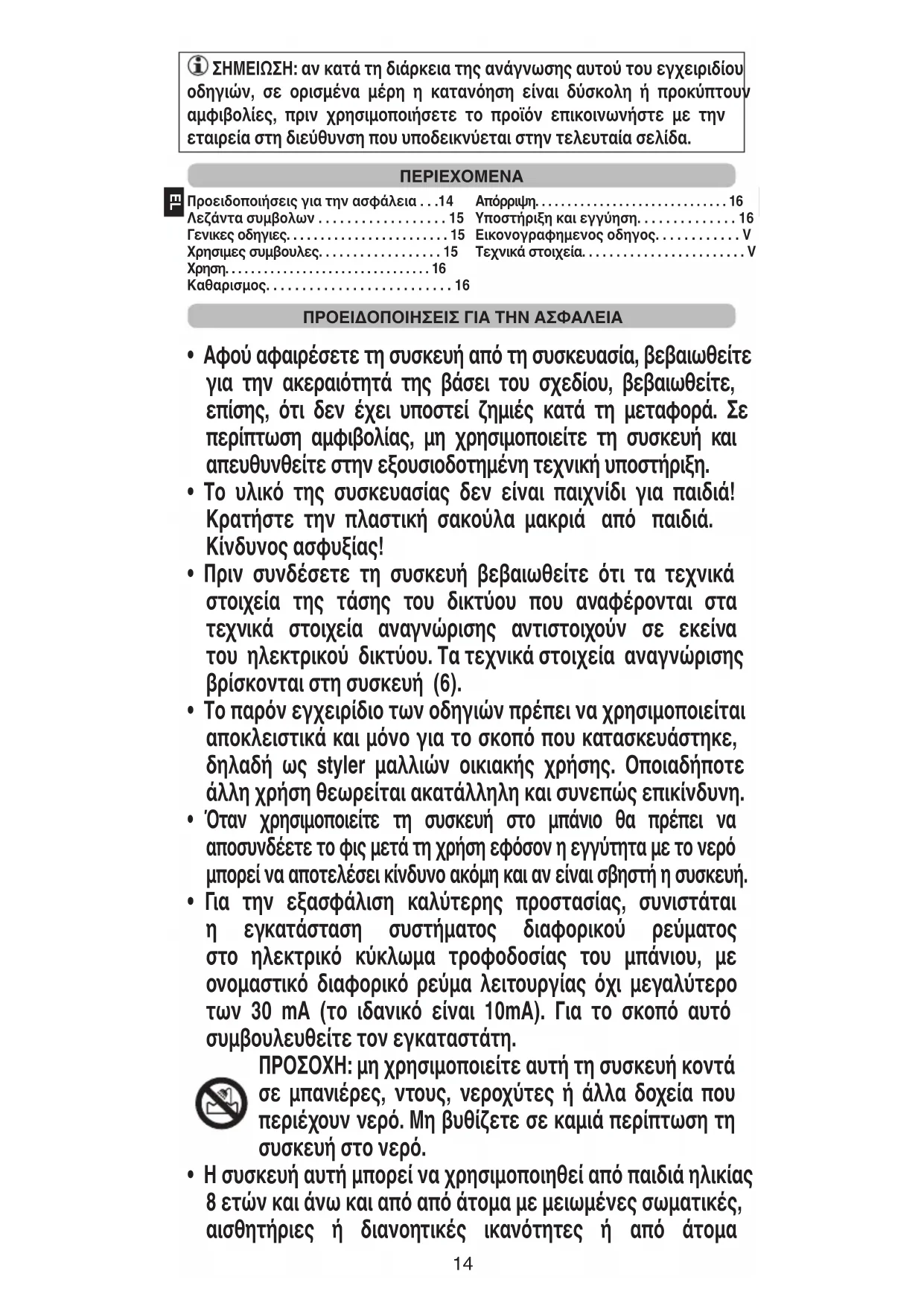 • Η συσκευή πρέπει να χρησιμοποιείται μόνο για μαλλιά